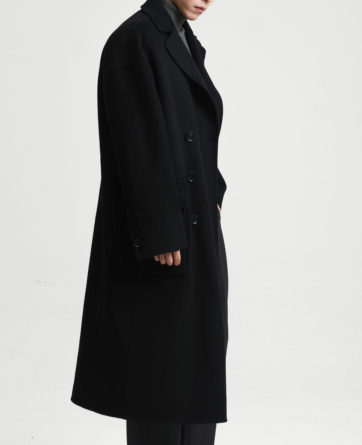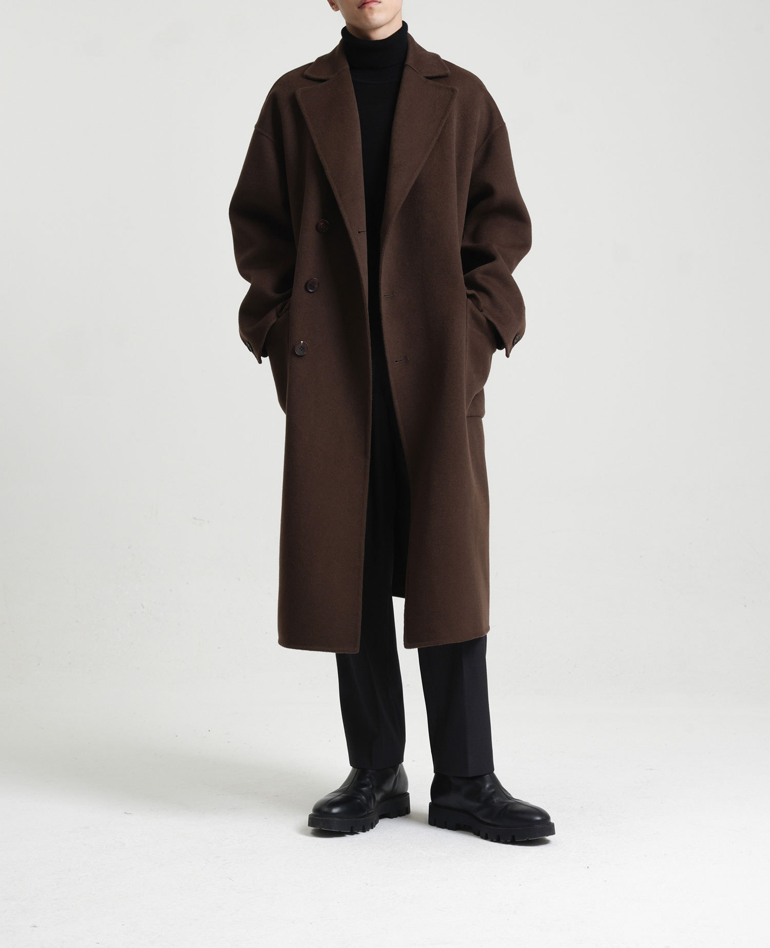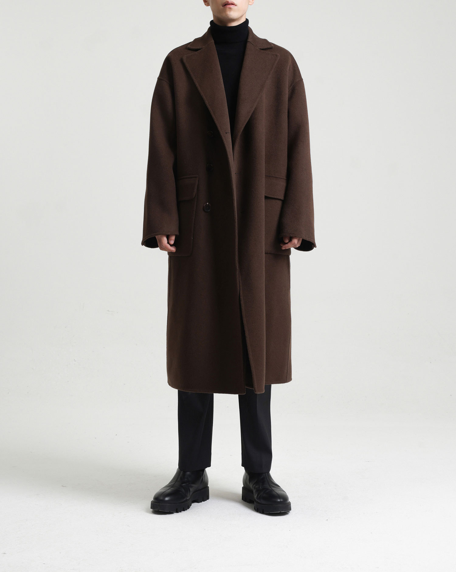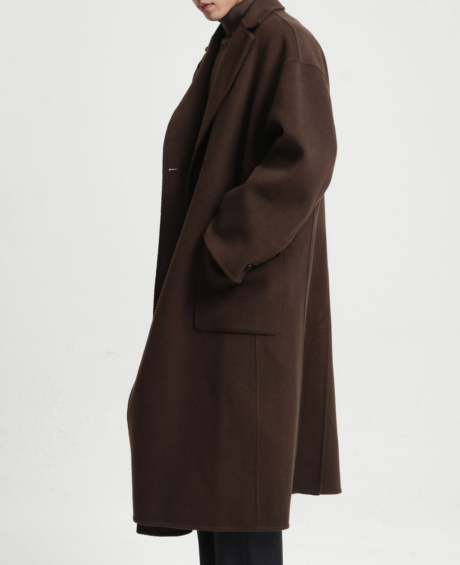 現物の新型の純色のコートの長いタイプの両面はウールのコートの男性の秋冬です。