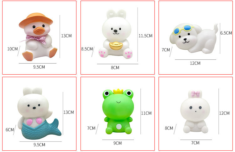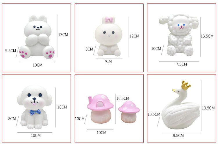 TZ-オレンジ色のアヒル-ランダムにリボンを1本送る,TZ-黄色のアヒル-ランダムにリボンを1本送る,TZ-子羊,TZ-ウサギ,TZ-居眠り猫,ホワイトスワン,TZ-シロクマ,TZ-小さなピンクのクマ,サングラス子犬,子犬 (ピンクリボン),子犬 (青い蝶結び),大きなキノコ,キノコ