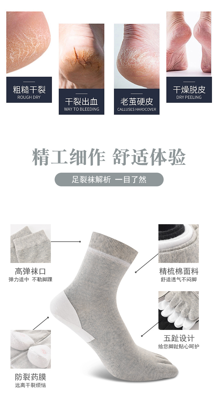 エレガントな五本指ソックス、ひび割れ防止ソックス、かかと型、かかとが乾燥してひび割れるのを防ぐ、指が分かれたソックス、足のひび割れ防止、ビジネススタイル
