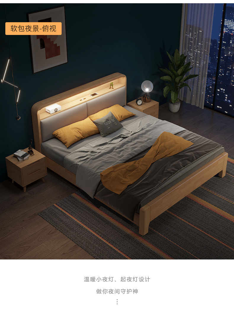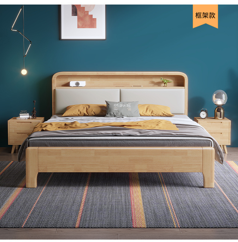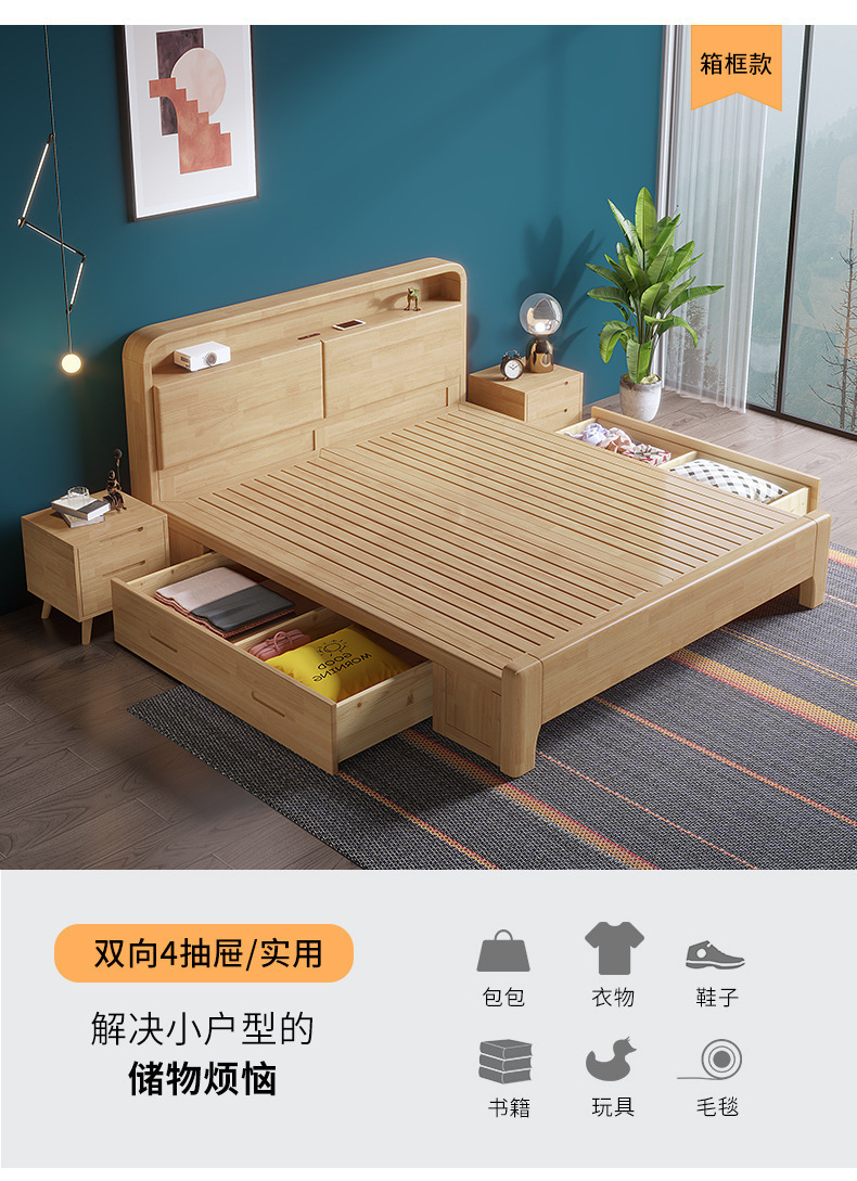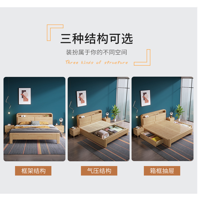 実木原木北欧ベッド1.5メートル1.8メートル現代のシンプルな貯蔵ベッドは、ベッドの主寝ツインベッドを調節できる