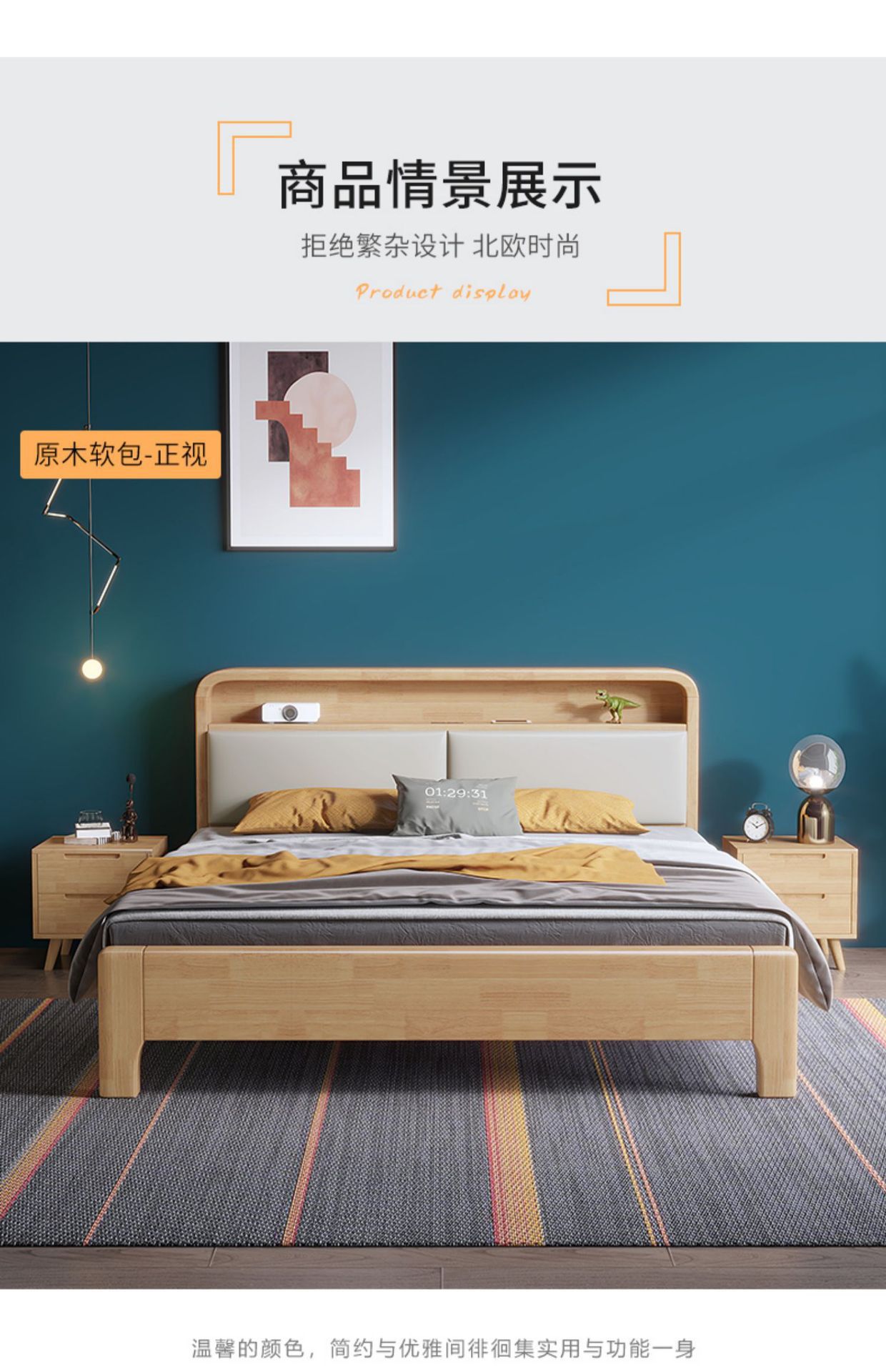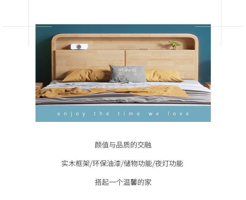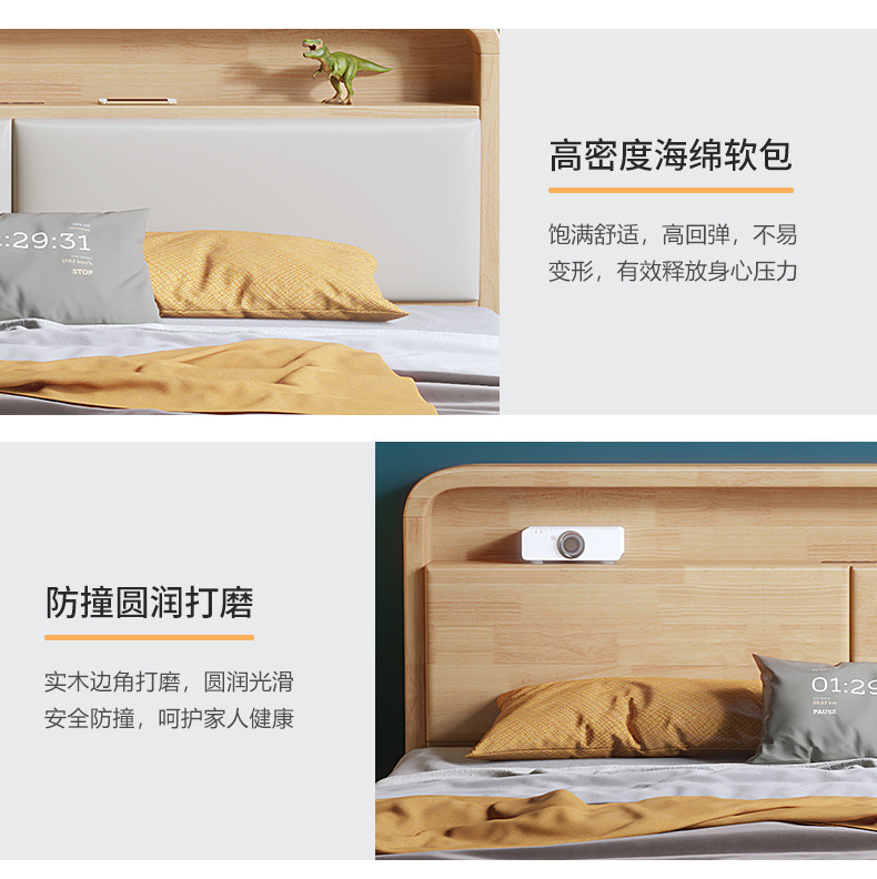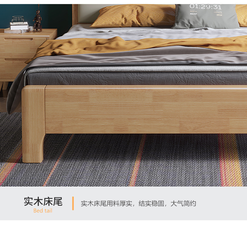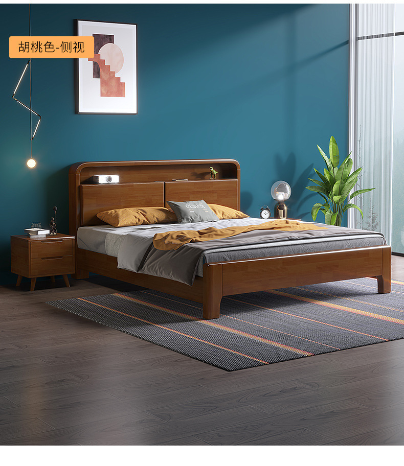 実木原木北欧ベッド1.5メートル1.8メートル現代のシンプルな貯蔵ベッドは、ベッドの主寝ツインベッドを調節できる