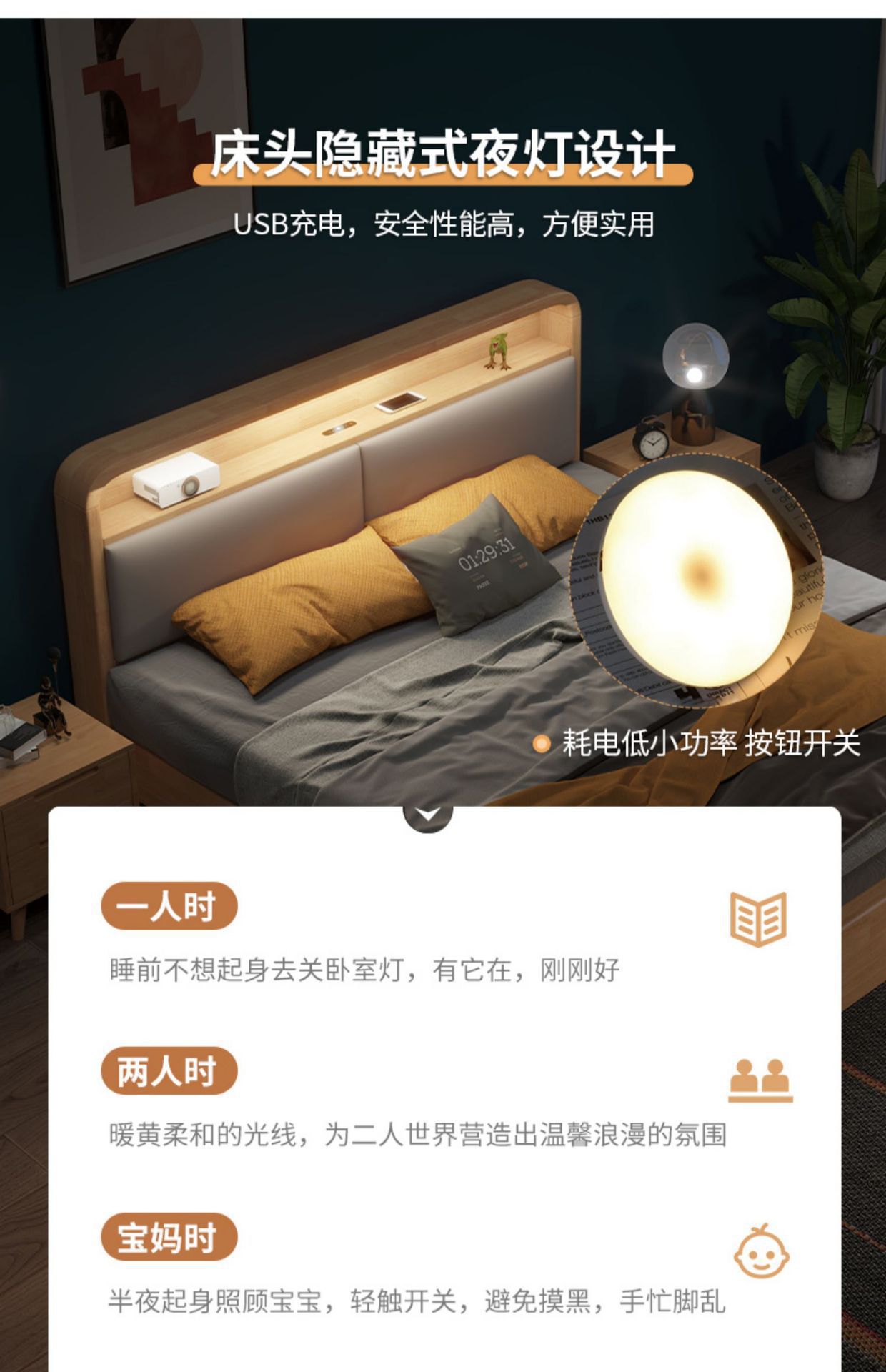 柔らかいベッド + 1つのベッドの頭箱