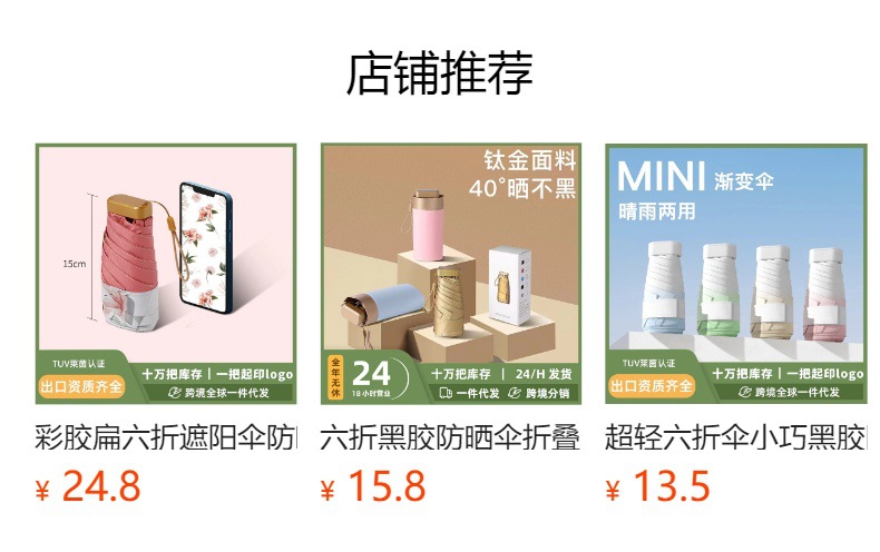平六折ミニ黒ゴム日焼け止め傘女性高級感日傘卸売り晴傘カスタム広告日傘