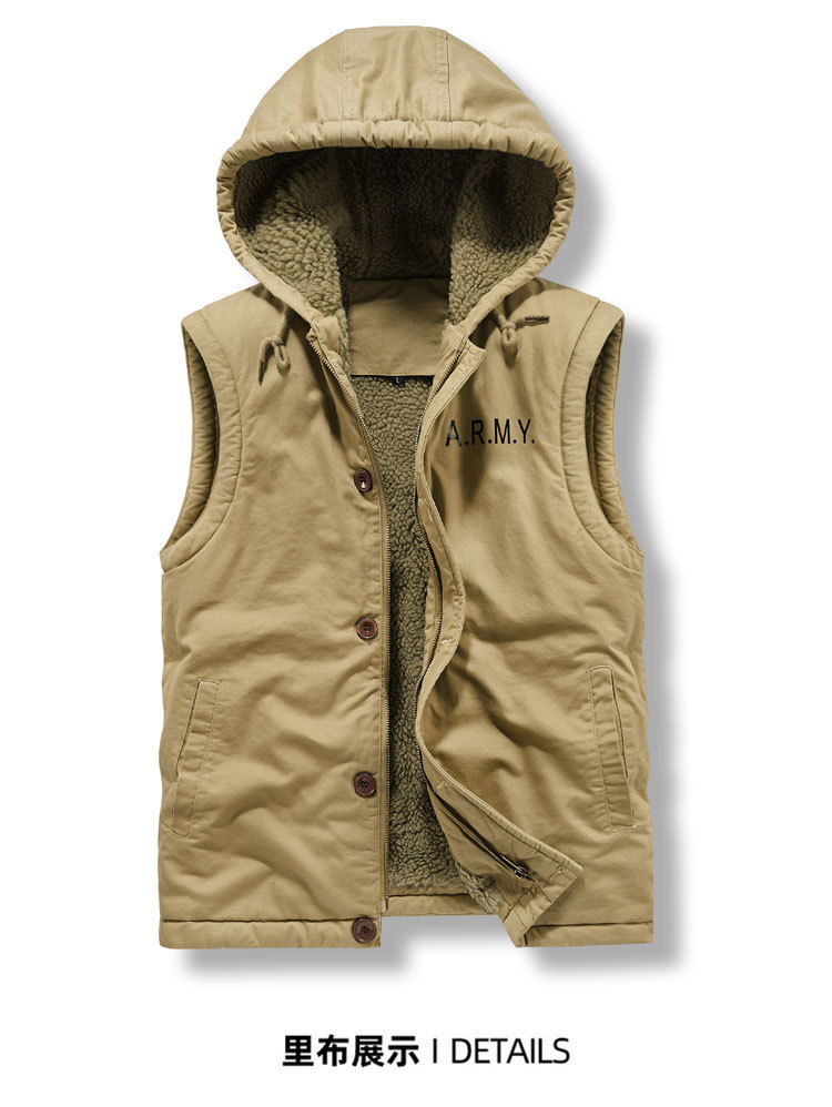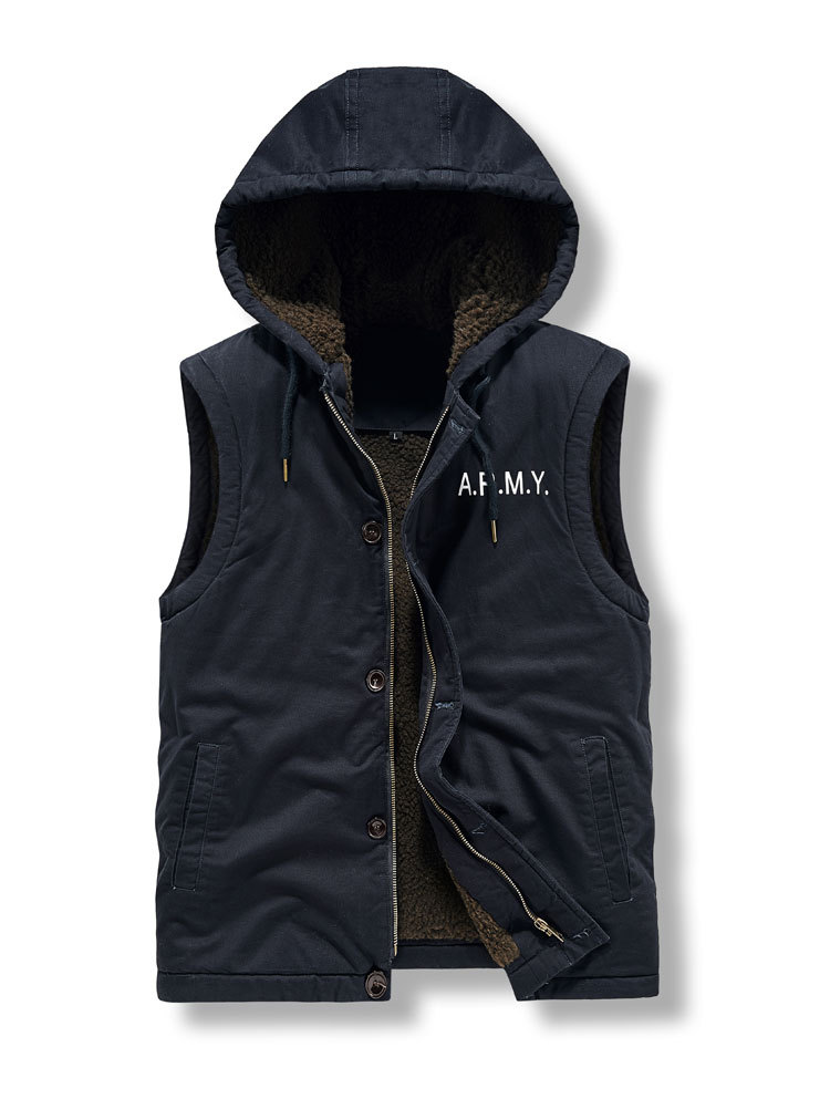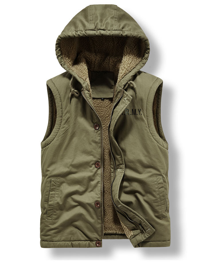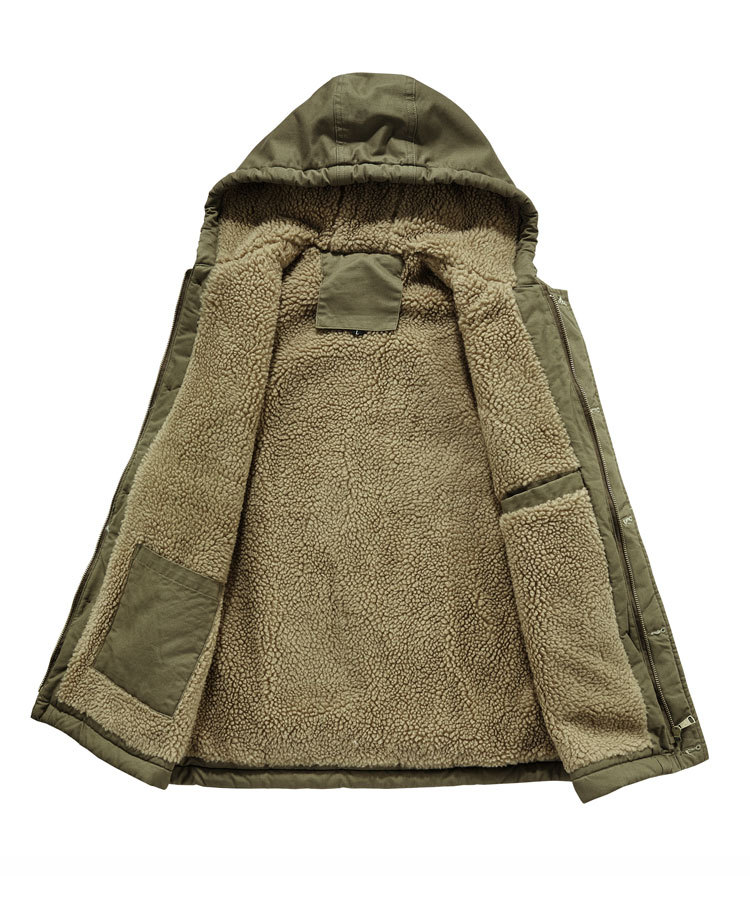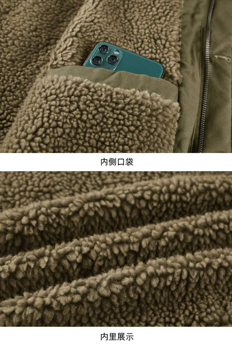 冬の綿の服の男性は厚い帽子の羊の小毛のベストのオーバーのアメリカの工装の綿の服の男性の海軍のn 1甲板の服を着ます。