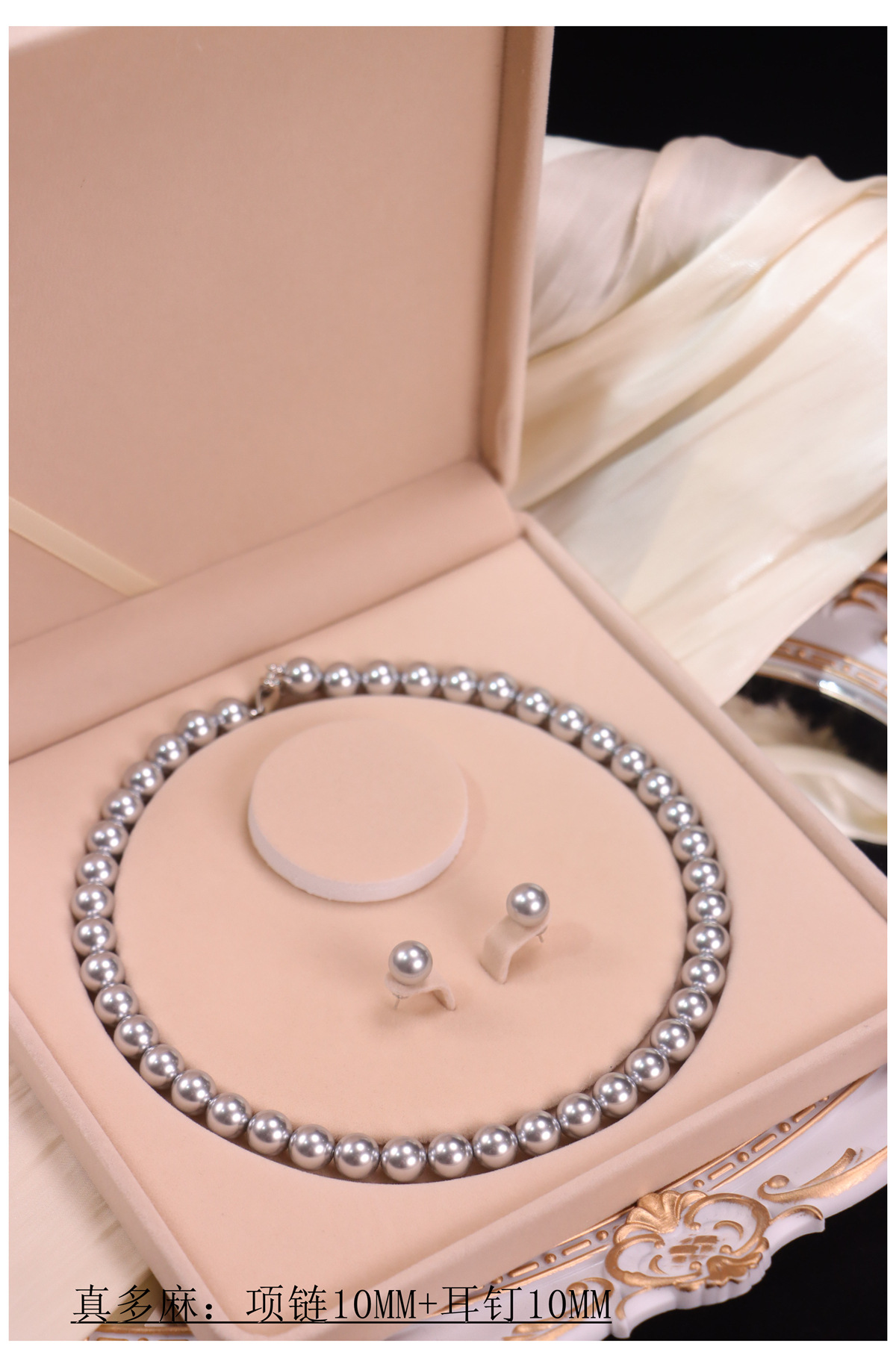 オフホワイトのベルベットボックス付き - 母の日セット - Zhen Duo Ma: ネックレス 10MM + イヤリング 10MM