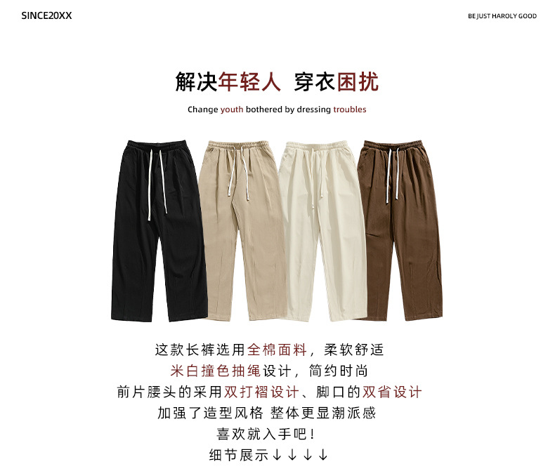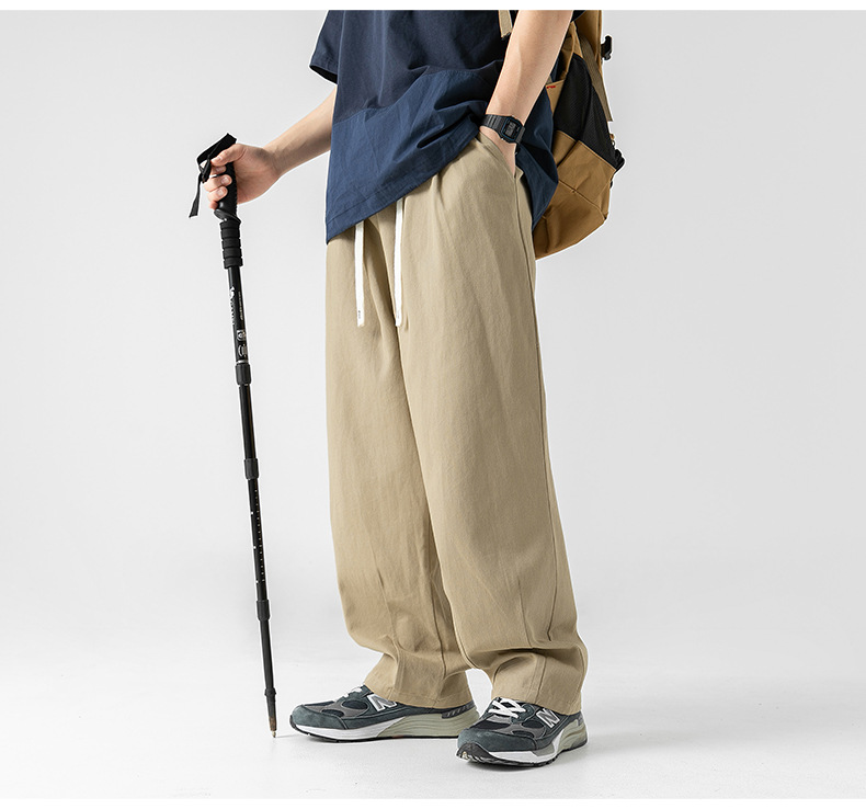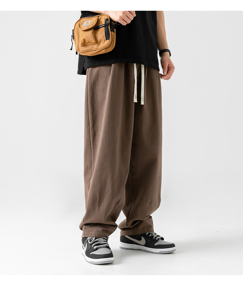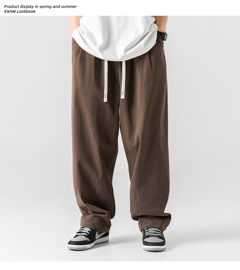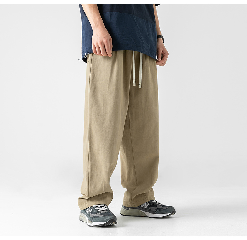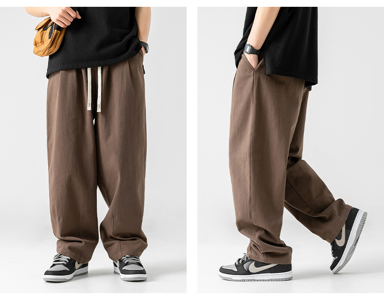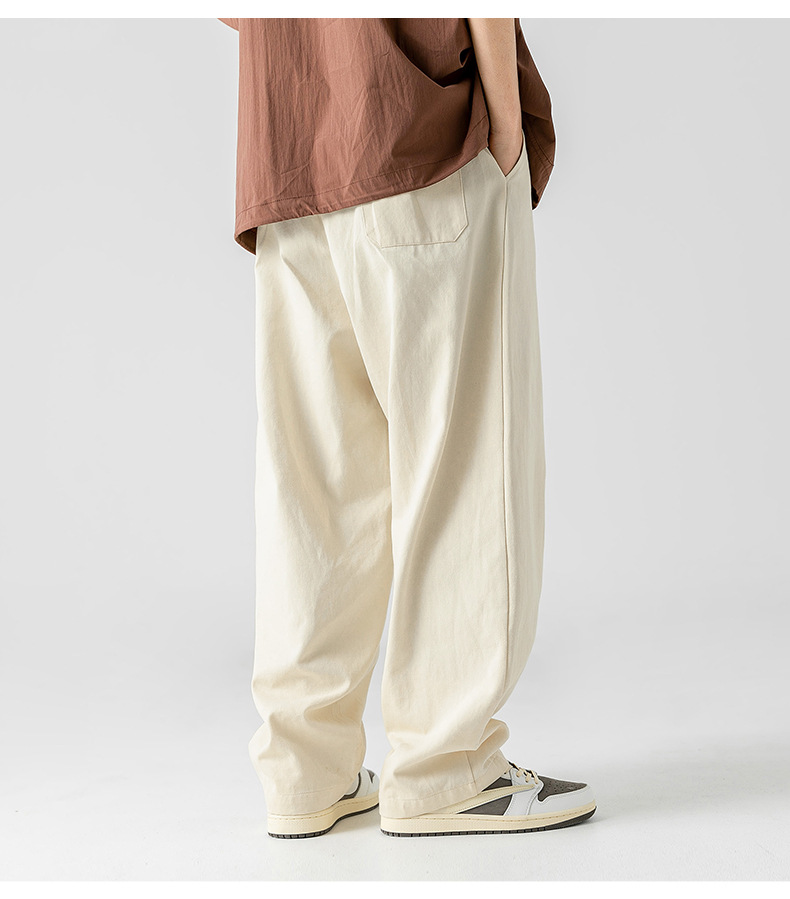 日本製ドレープピュアコットンカジュアルパンツメンズ2025春新作レトロダブルプリーツデザインプラスベルベット万能ロングパンツ