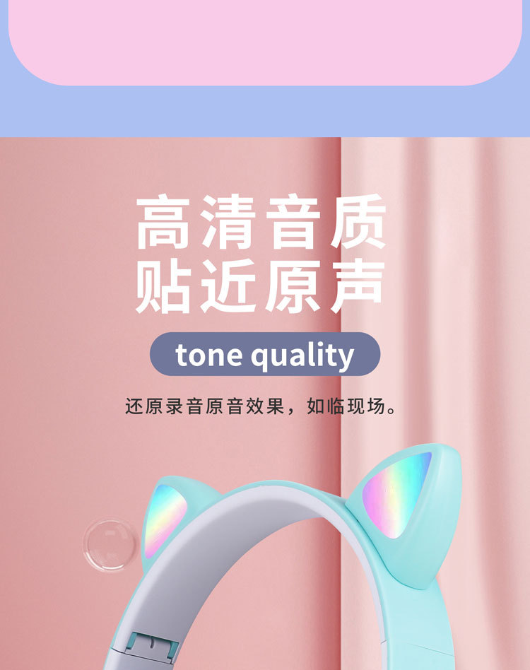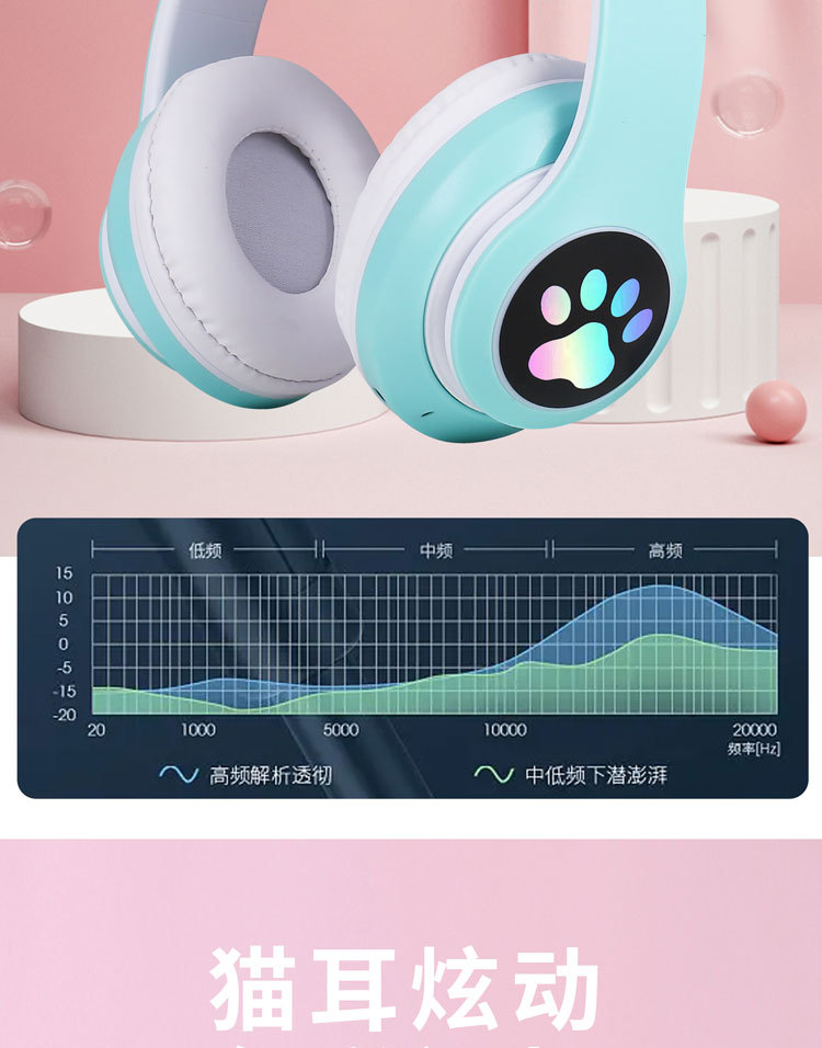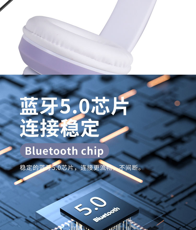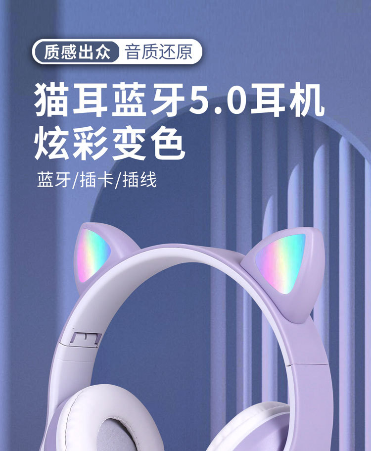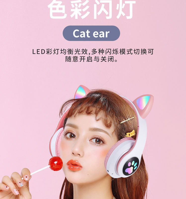 越境ヘッドセットbluetoothイヤホンSTN-28猫耳重低音フラッシュ発光無線運動カードヘッドセット