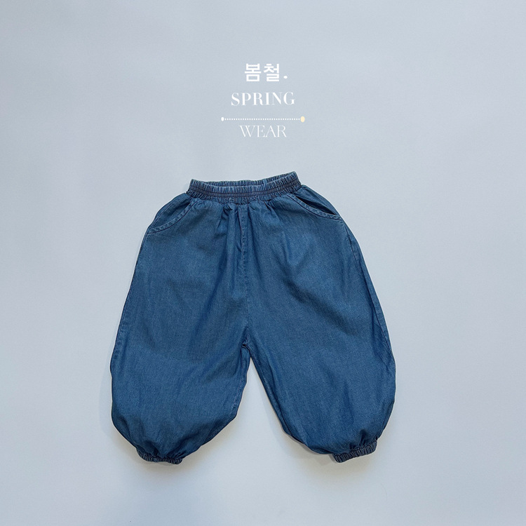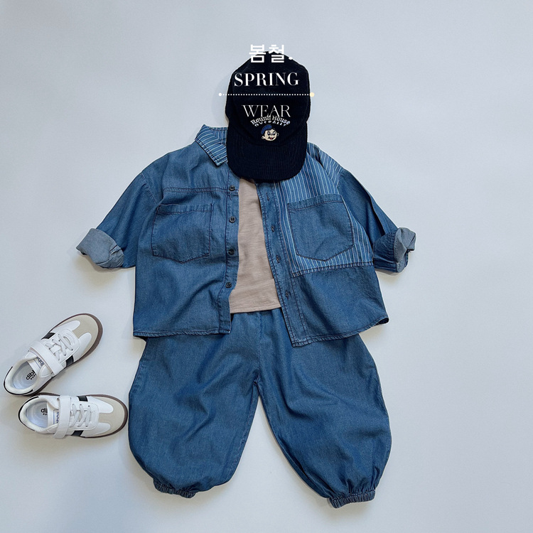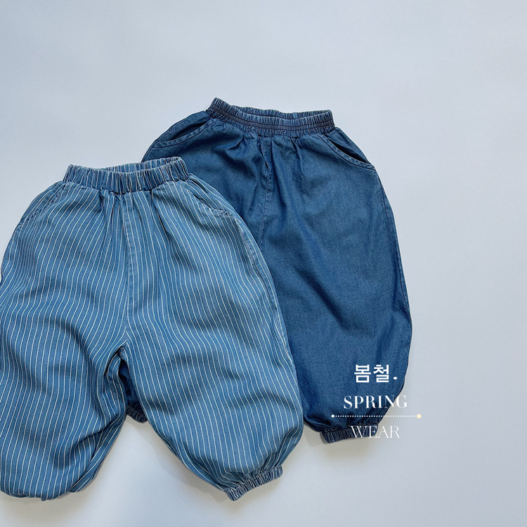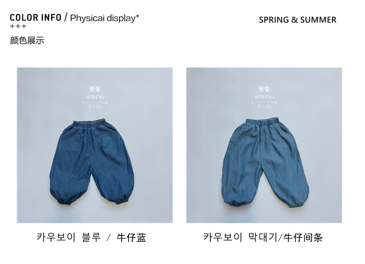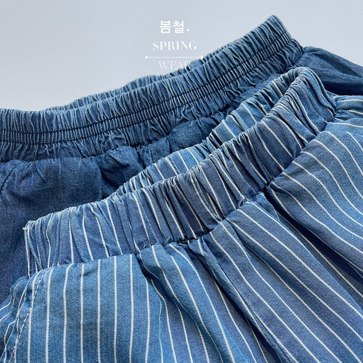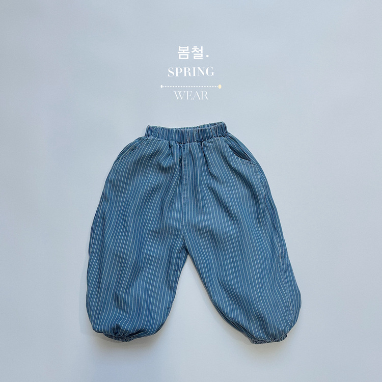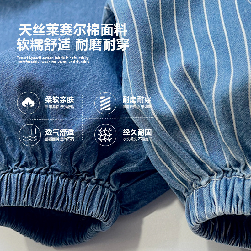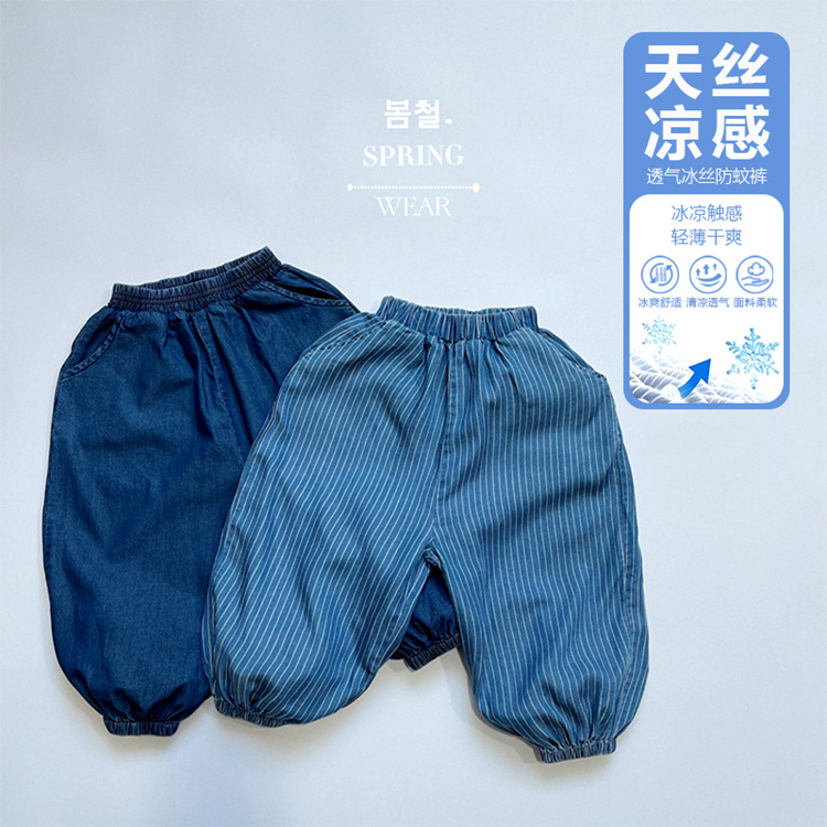 子供用テンセル防蚊パンツ夏の新しいスタイルのストライプ防風ジーンズ男の子と女の子用薄い韓国風空調ブルマー