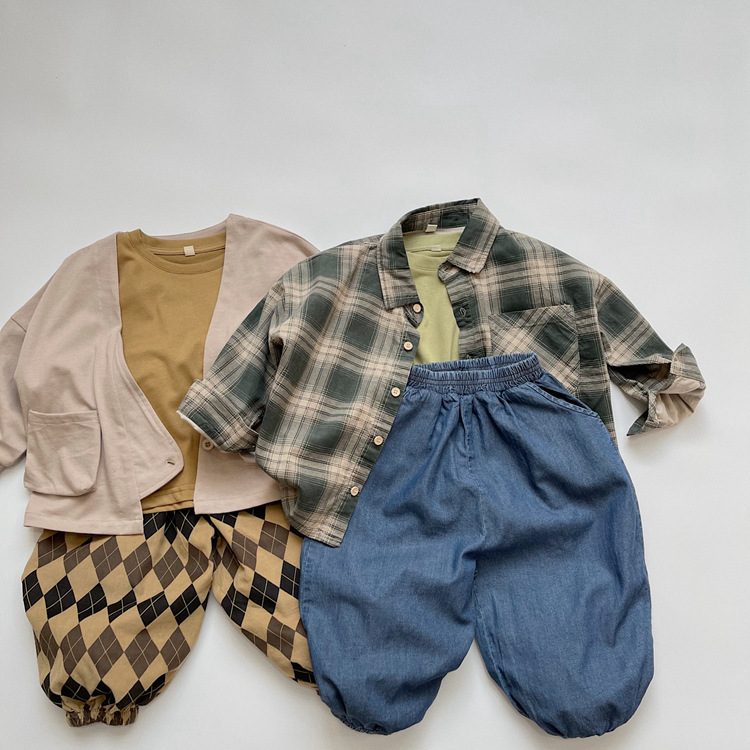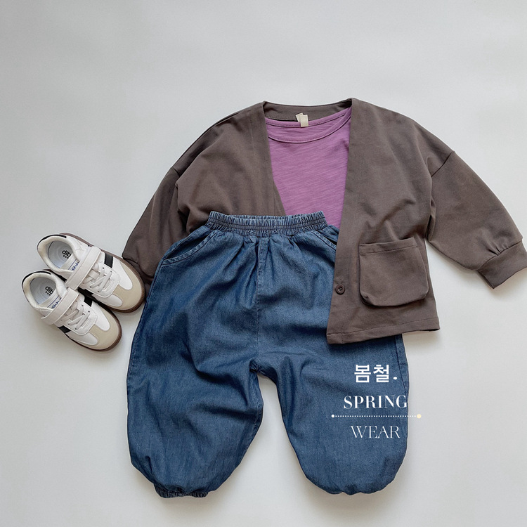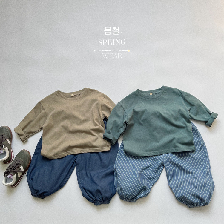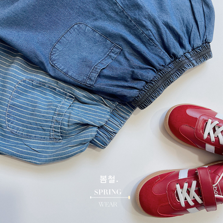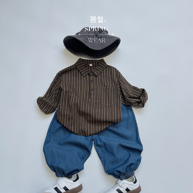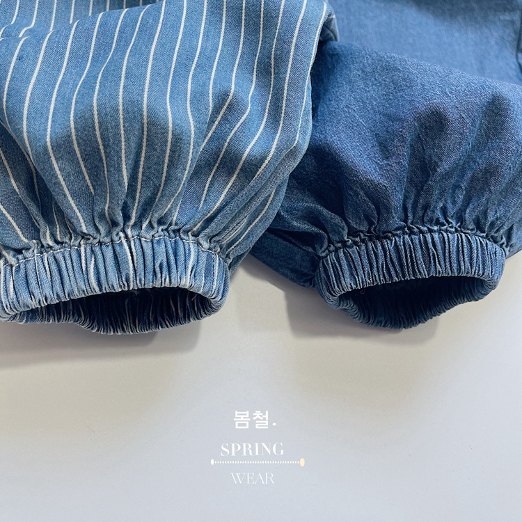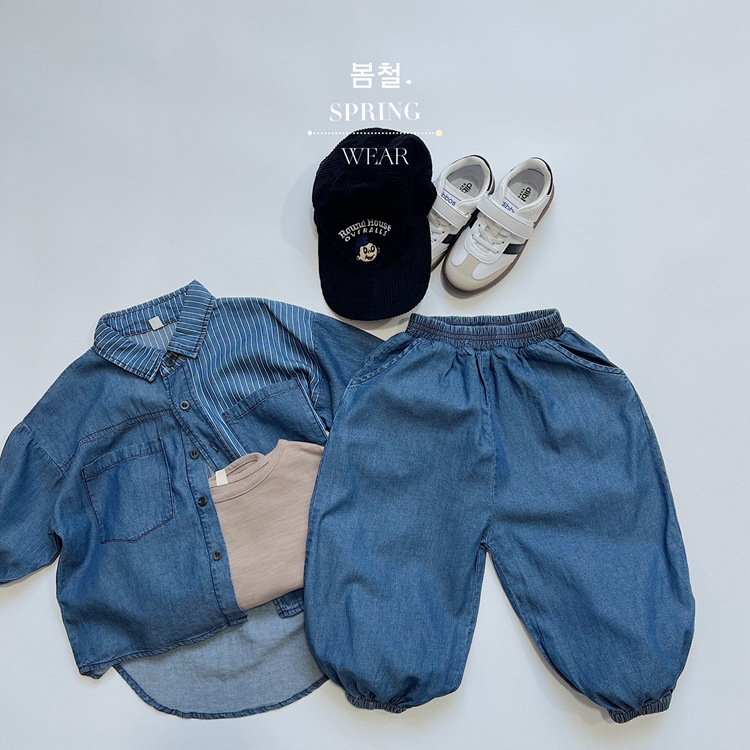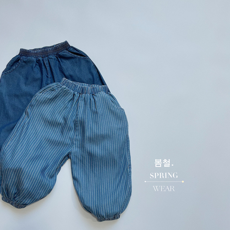 子供用テンセル防蚊パンツ夏の新しいスタイルのストライプ防風ジーンズ男の子と女の子用薄い韓国風空調ブルマー