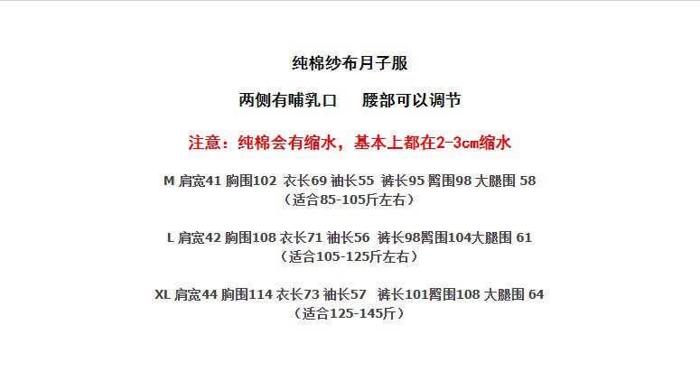 純綿ガーゼ月子服秋産後産婦授乳妊婦パジャマ女性春秋冬2点セット妊娠