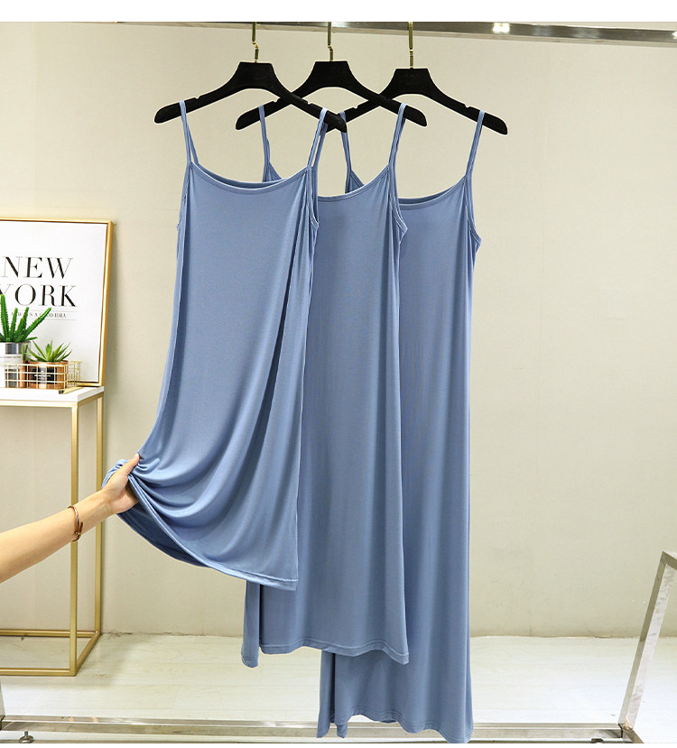 モーダルストラップのベストスカートの女性の夏の中には、袖なしのロングスカートの裏地が痩せている中長のワンピースがあります。