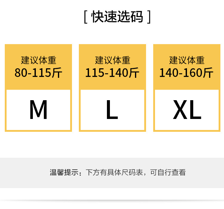 M (推奨80-115斤),L (推奨115-140斤),Xl (推奨140-160斤)