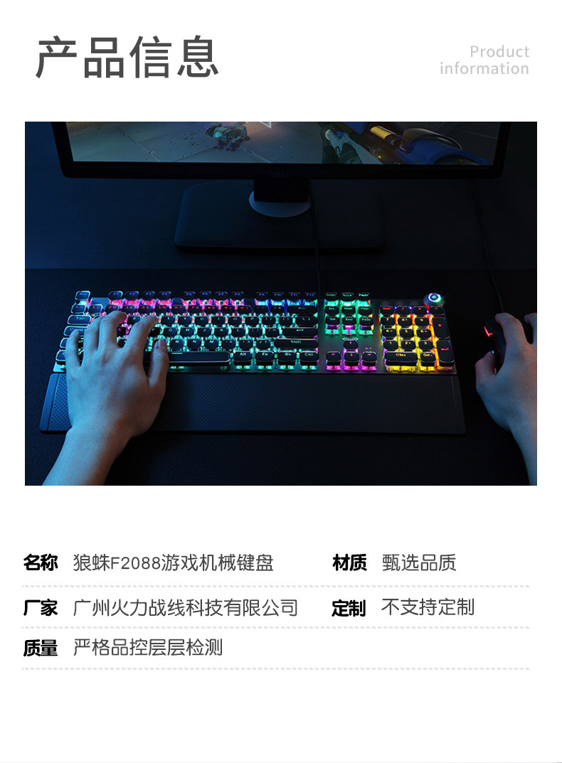 タランチュラf2088f2058機械師は鶏の機械のキーボードの青軸を食べます。