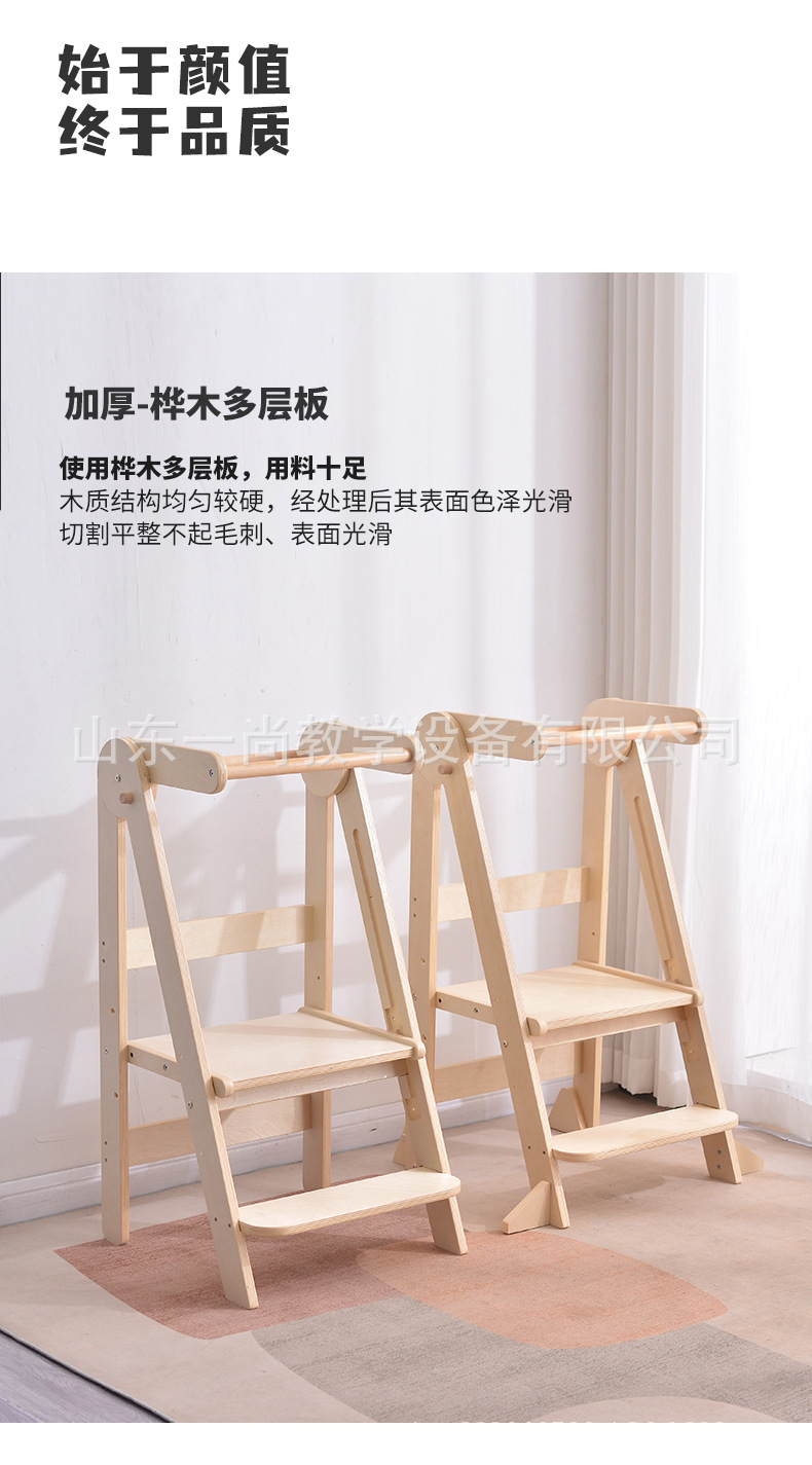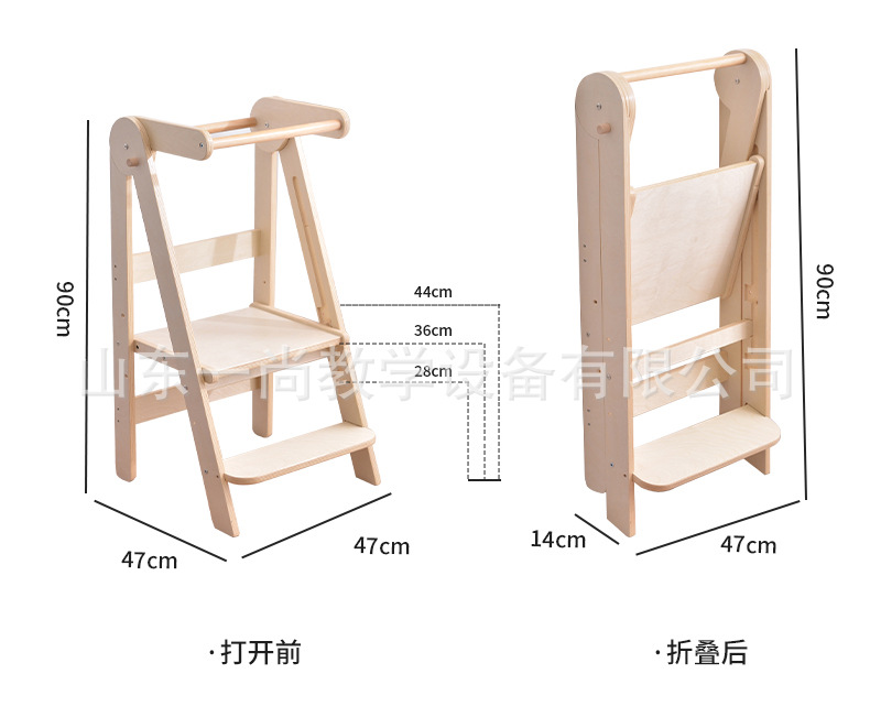 無垢材 (横転防止) (折りたたみ3段高さ調節)