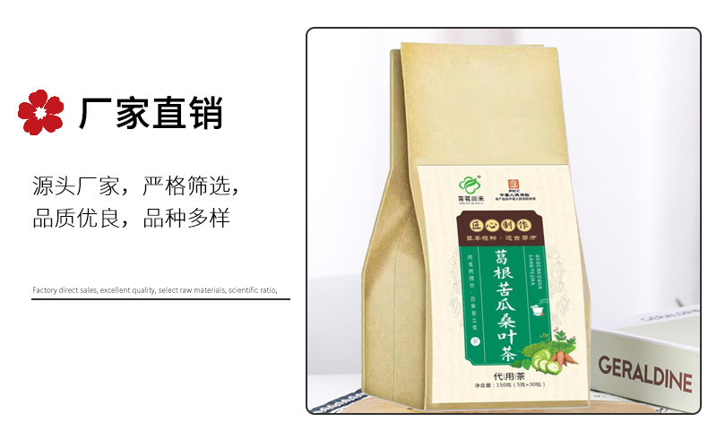 葛根のニガウリの桑の葉のお茶の組み合わせの花の草のお茶の決明子の蓮の葉の袋はお茶の源の工場を浸してニガウリのお茶を卸売りします。