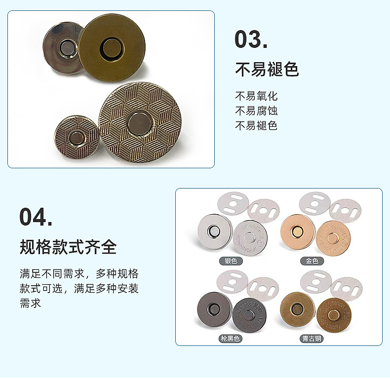 バッグ金具 18mm 磁気マグネットバックル 10mm 磁気ボタン 片面両面スタッズボタン 麦わら帽子 強力磁気ボタン