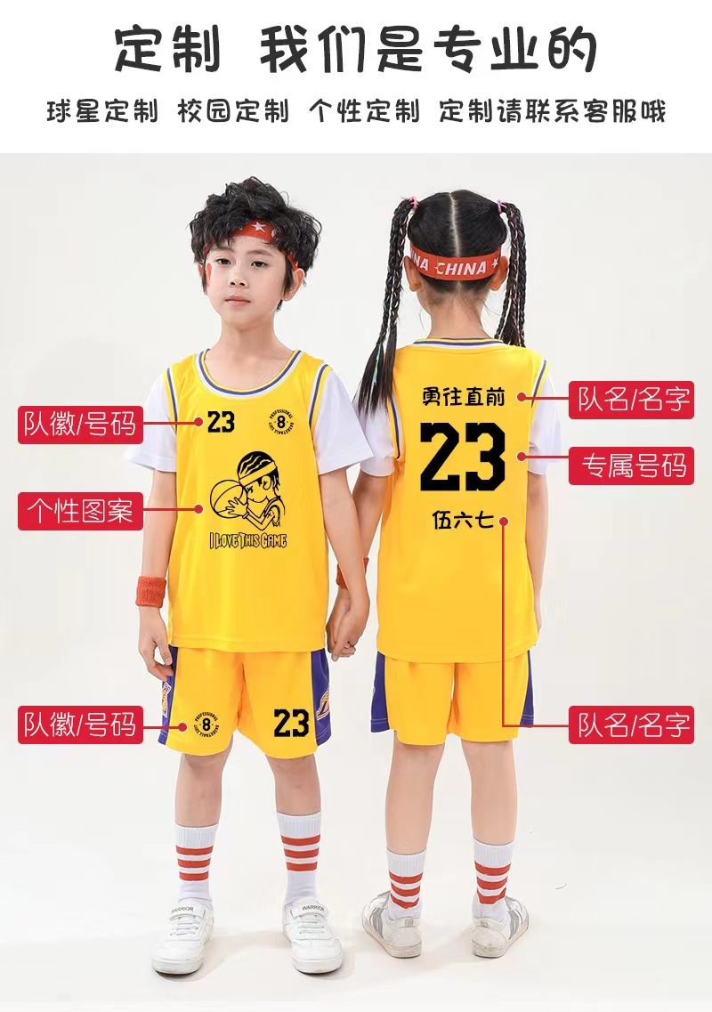 メーカー卸売り児童バスケットボール服セット偽二枚セット半袖幼稚園小学校演技服訓練服