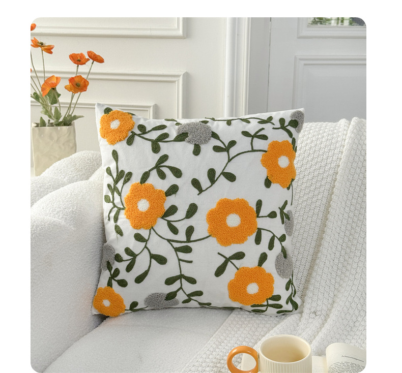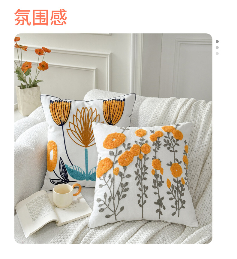 フランス田園現代シンプルなクロスボーダー花刺繍ソファクッション抱き枕民宿刺繍チューリップ枕カバー