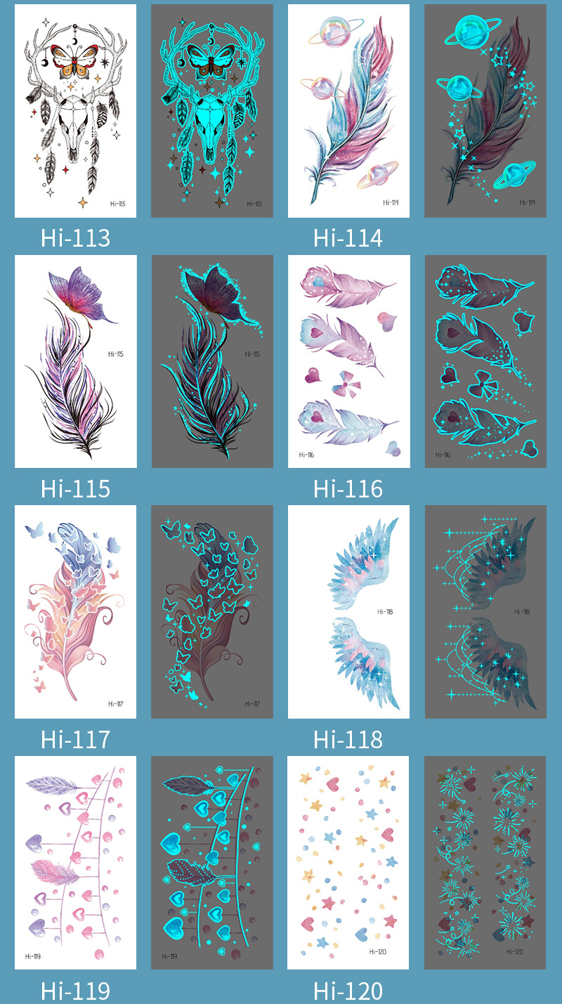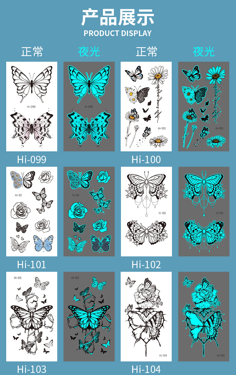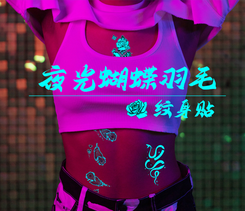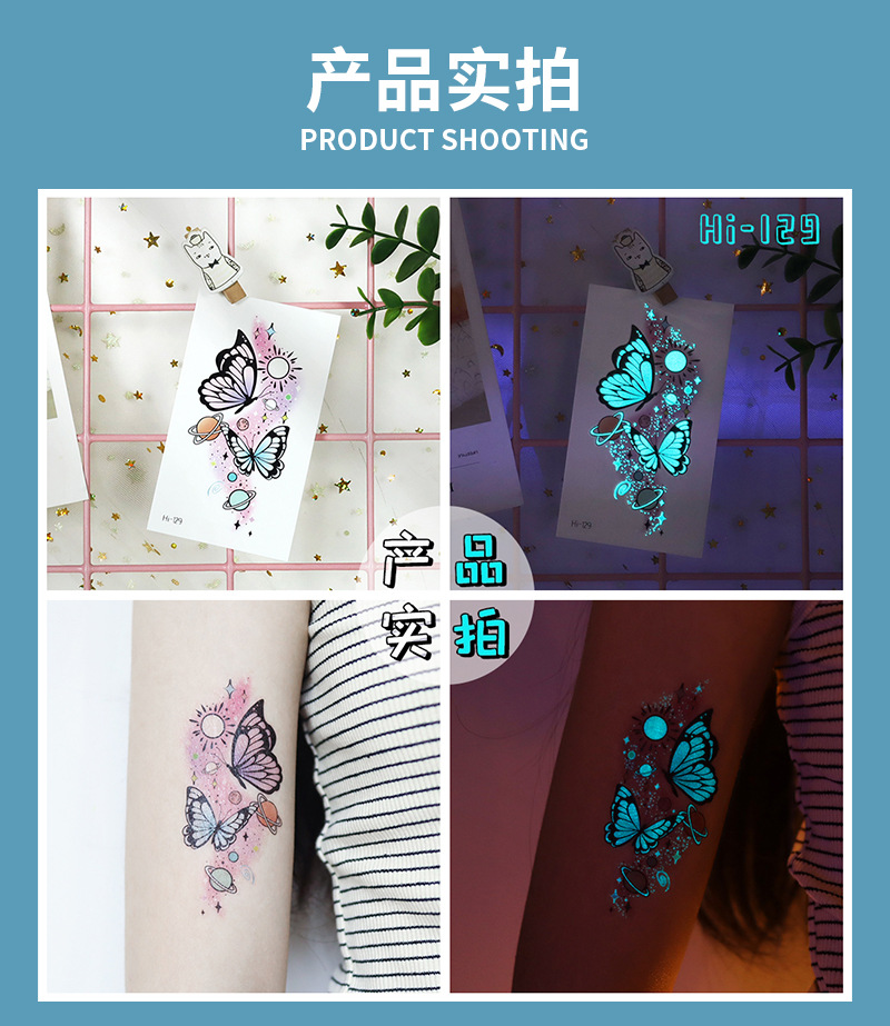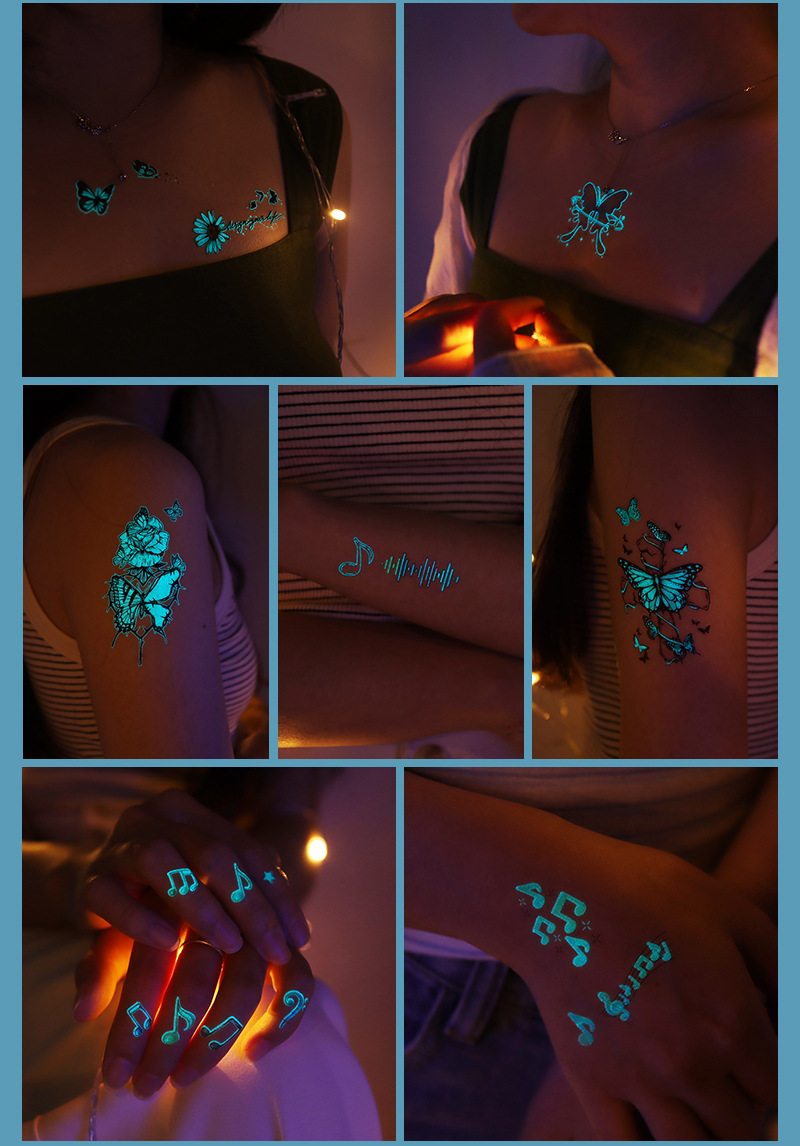 2024年新作 クロスボーダー ブルー夜光タトゥーシール 音楽祭 フェイスシール セクシーな蝶 防水ステッカー 半永久的