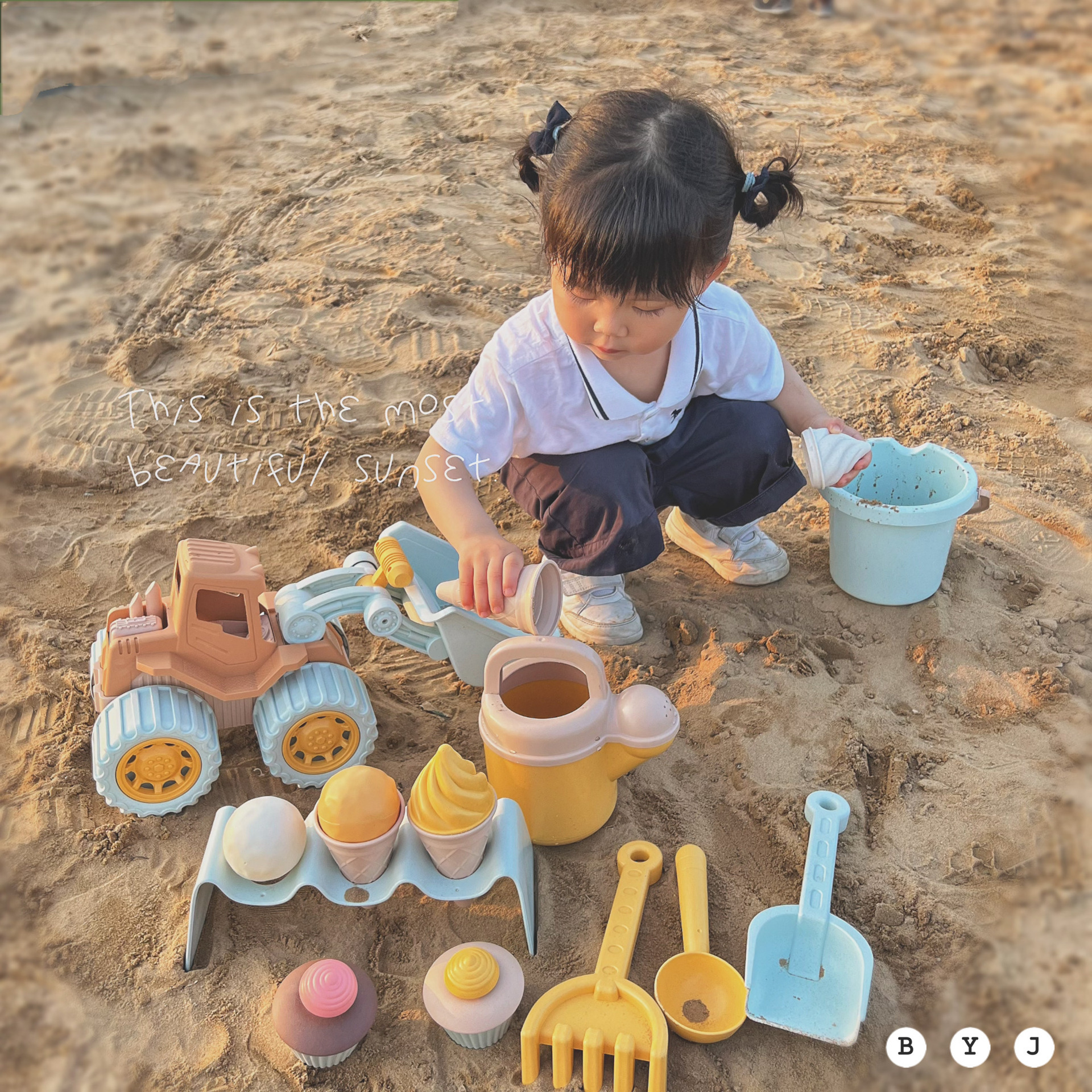 子供のブルドーザーの麦わらビーチのおもちゃの工事車の掘削機の小麦わらは砂の道具を掘って水のビーチシャベルを遊びます。