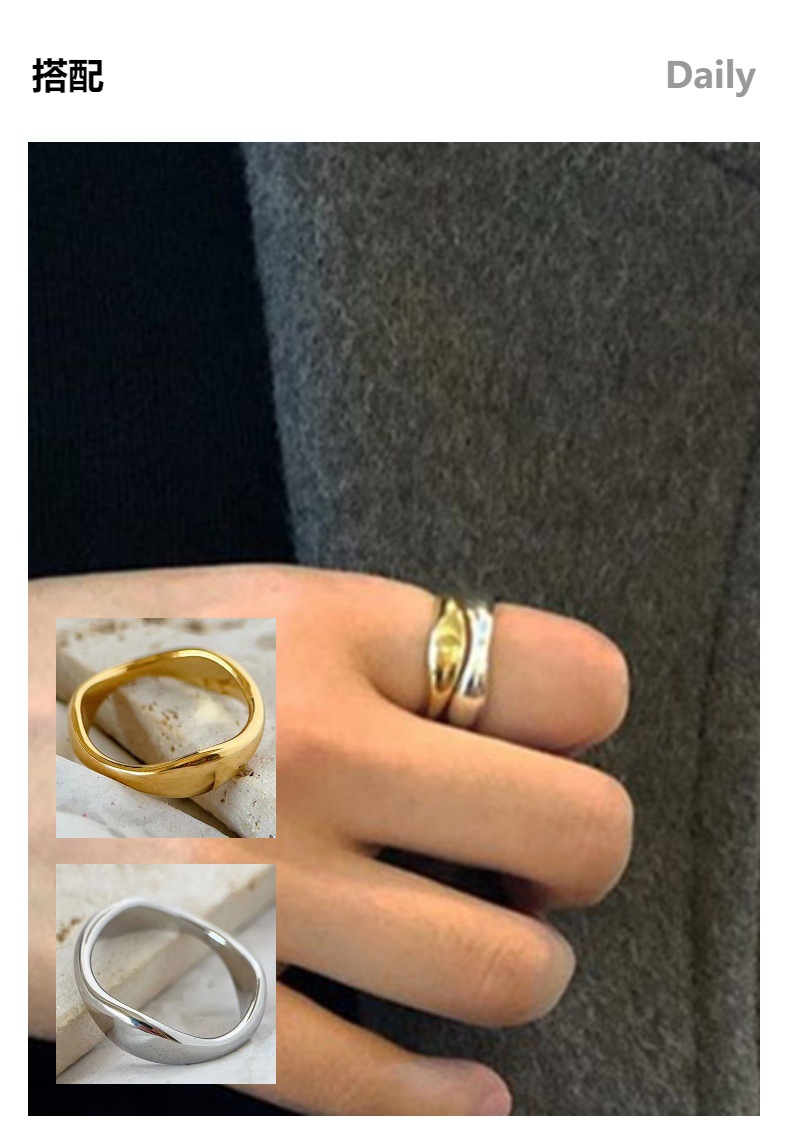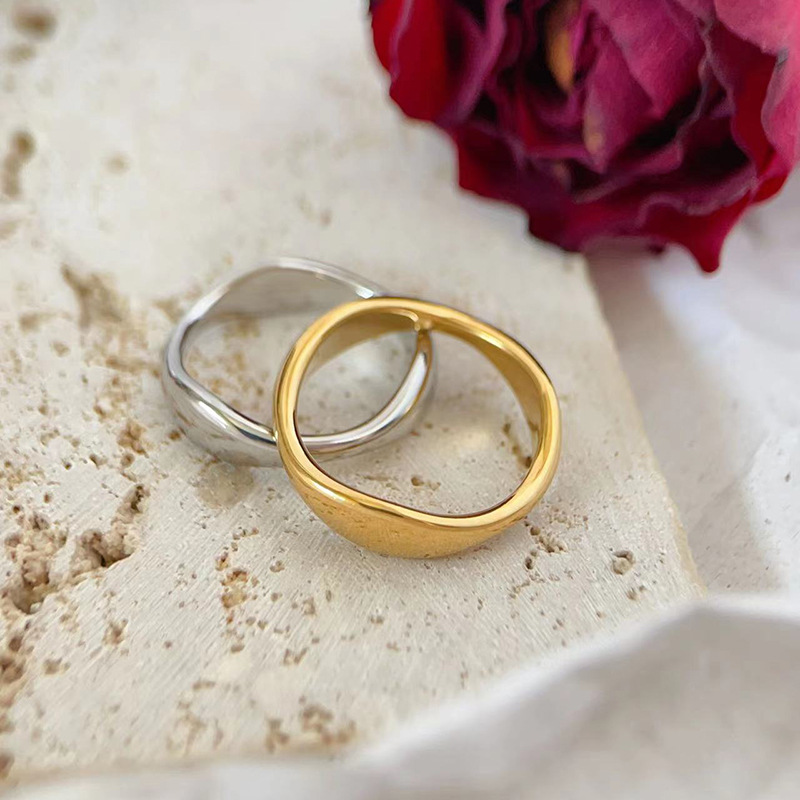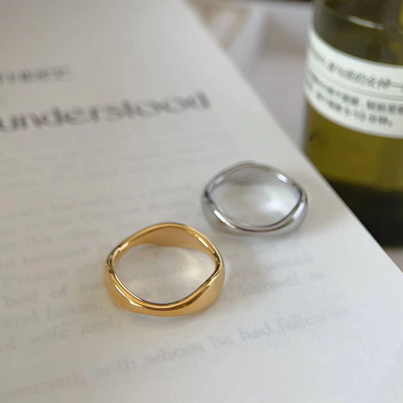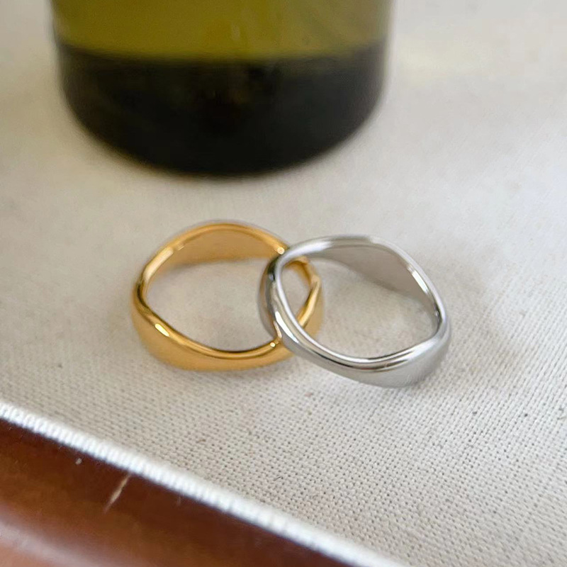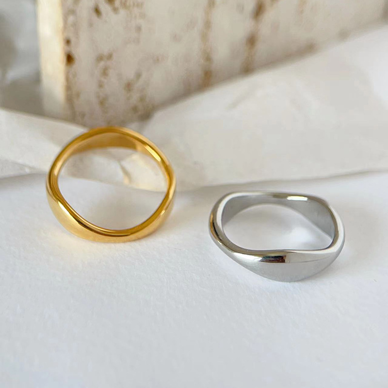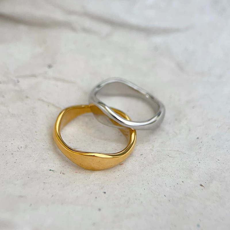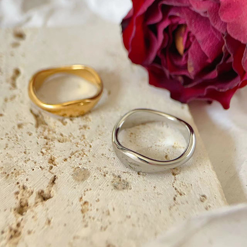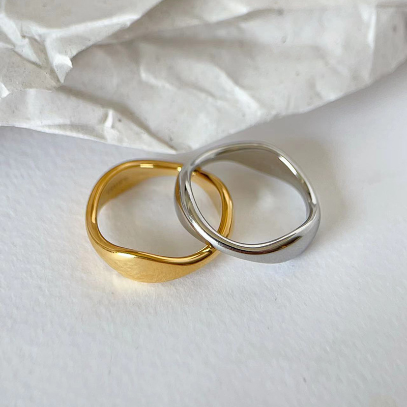 欧米のシンプルな金の銀色の不規則な異形の波の水滴の指輪の女性のチタンの鋼bの同じタイプのv竹の節の指輪