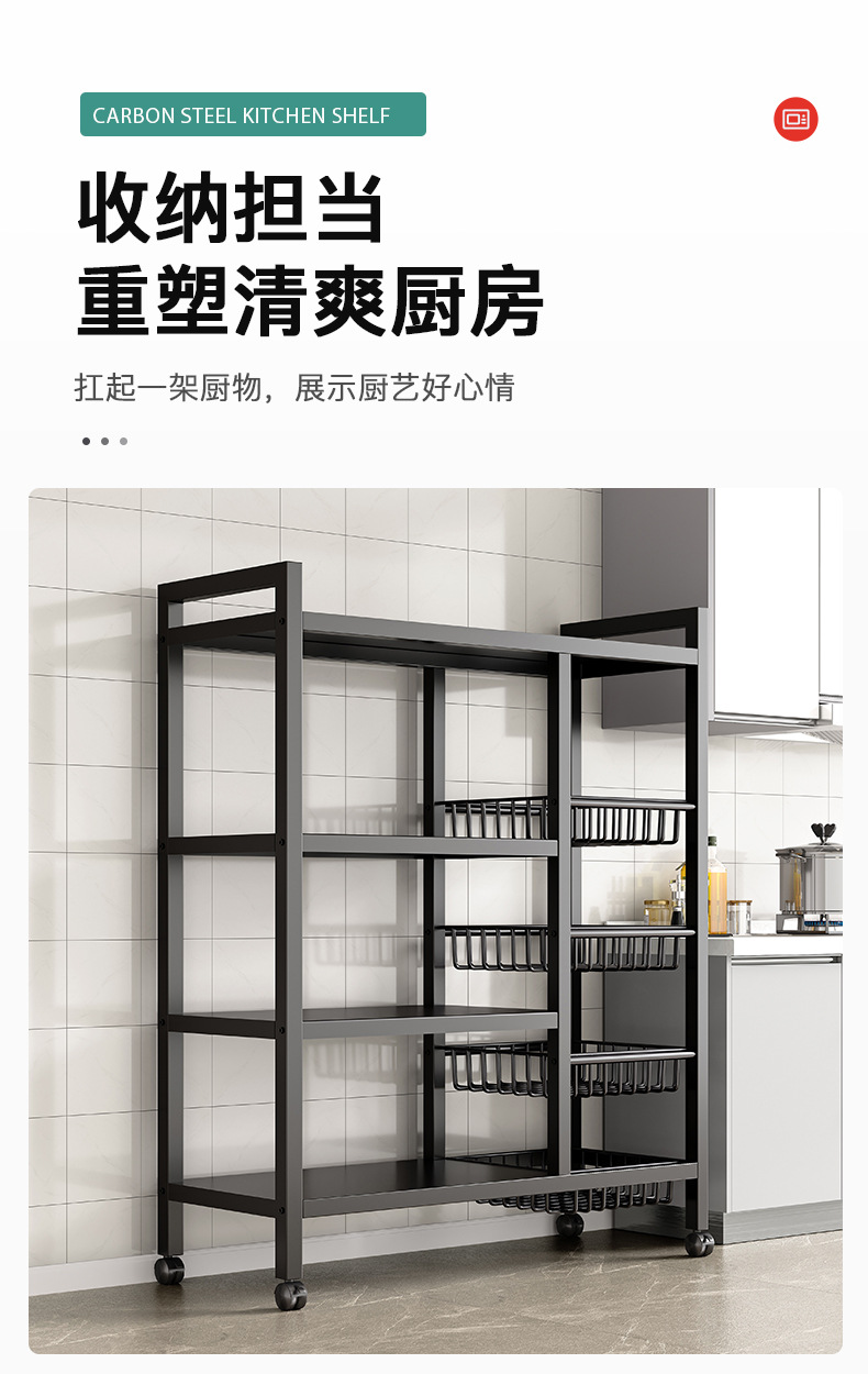 キッチンラック床置き多層野菜バスケット収納ラック多機能電子レンジオーブン棚収納ラック