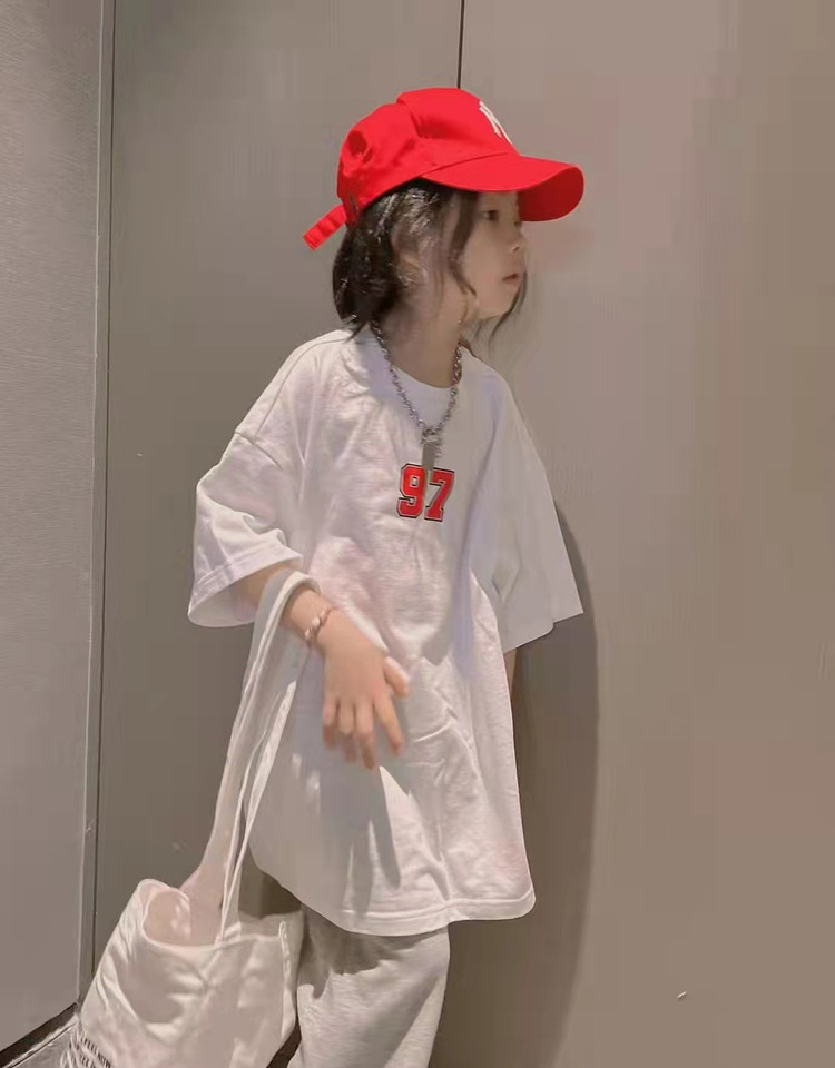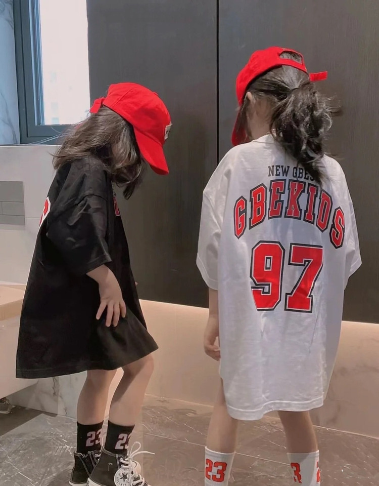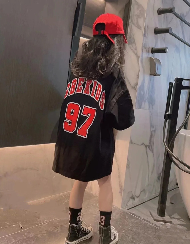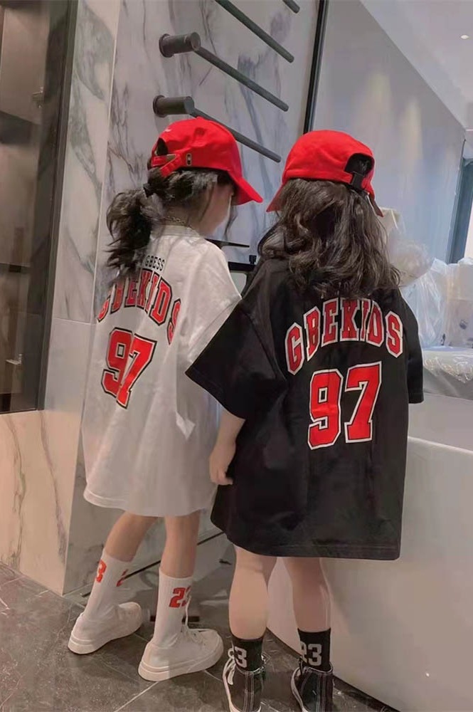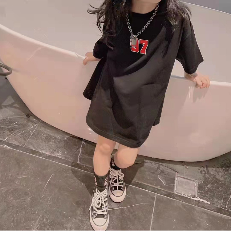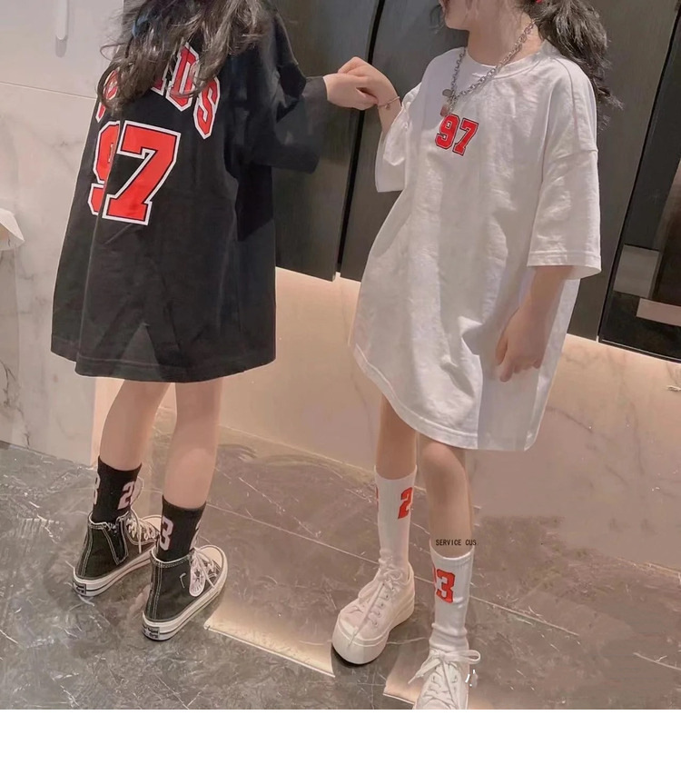 女の子の中の長いワンピースの洋風の夏服の中で大きい子供のゆったりしている上着の子供の半袖のバスケットボールの服のtシャツのスカートのファッション