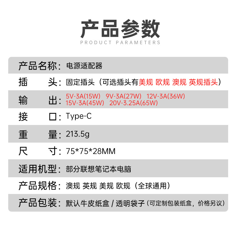 45W ブラック TYPE-C インターフェース,65W ブラック TYPE-C インターフェース,65W ホワイト TYPE-C インターフェース
