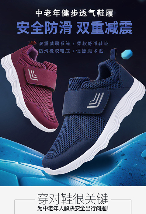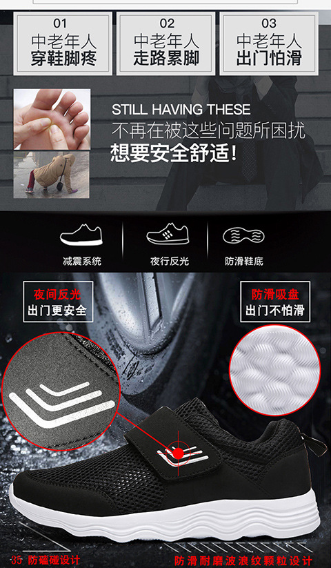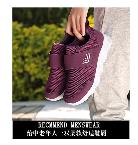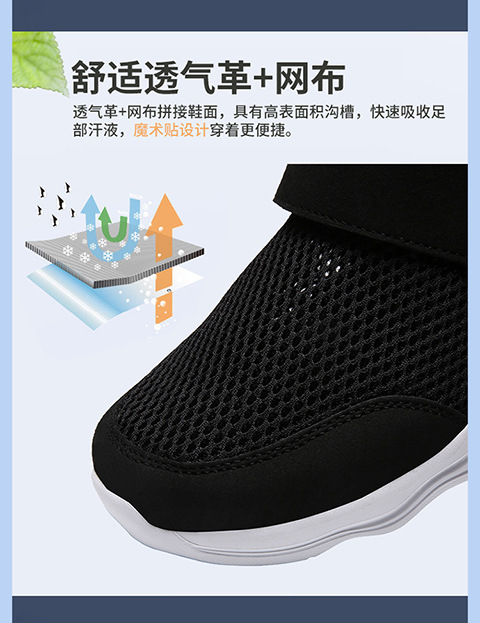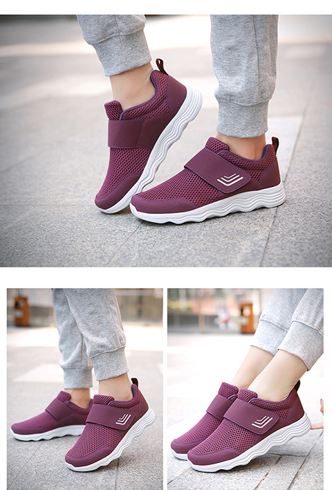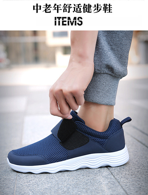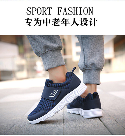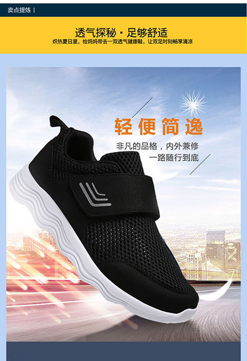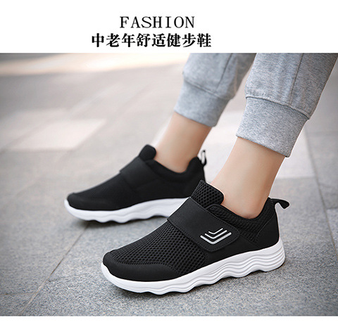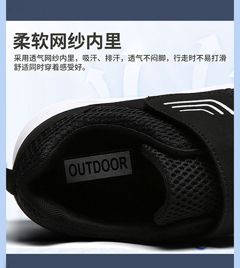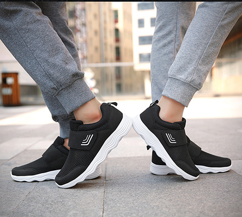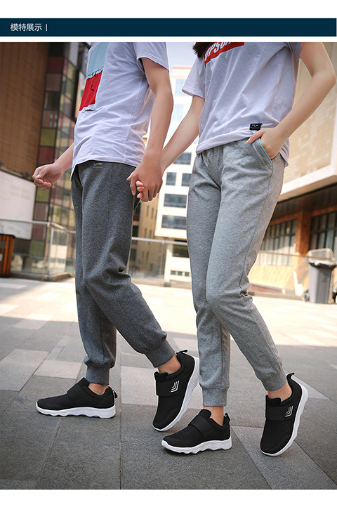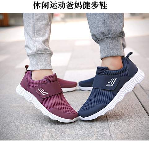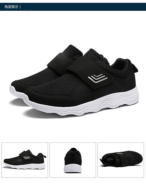 クロスボーダー男女飛織健歩靴通気運動靴春夏低組足マジックテープ透かし網面ランニング靴