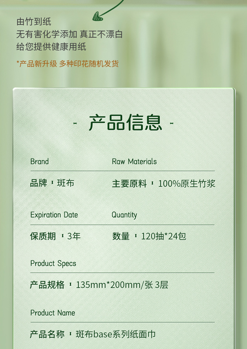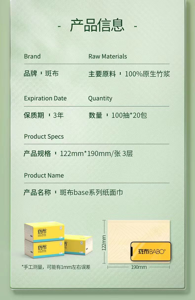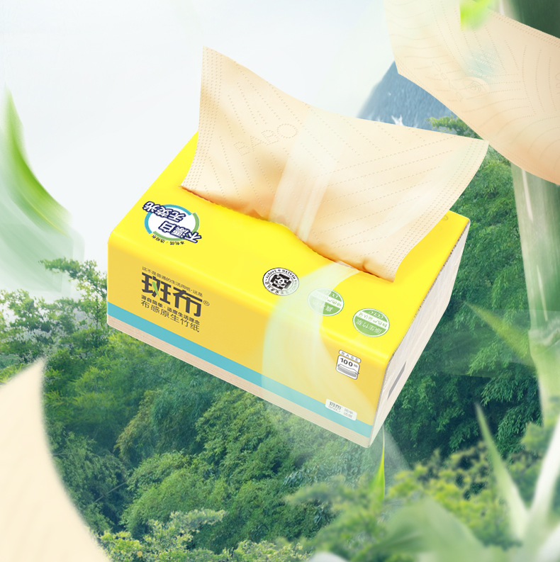 斑布抜紙100抽出24包地色竹パルプ家庭用ナプキンティッシュ紙無香トイレットペーパー卸売り箱