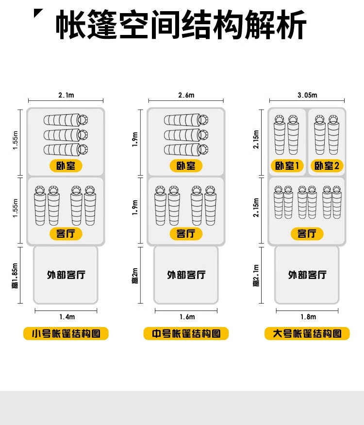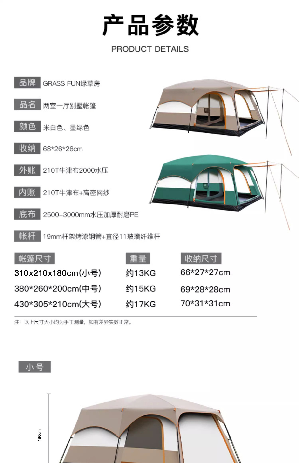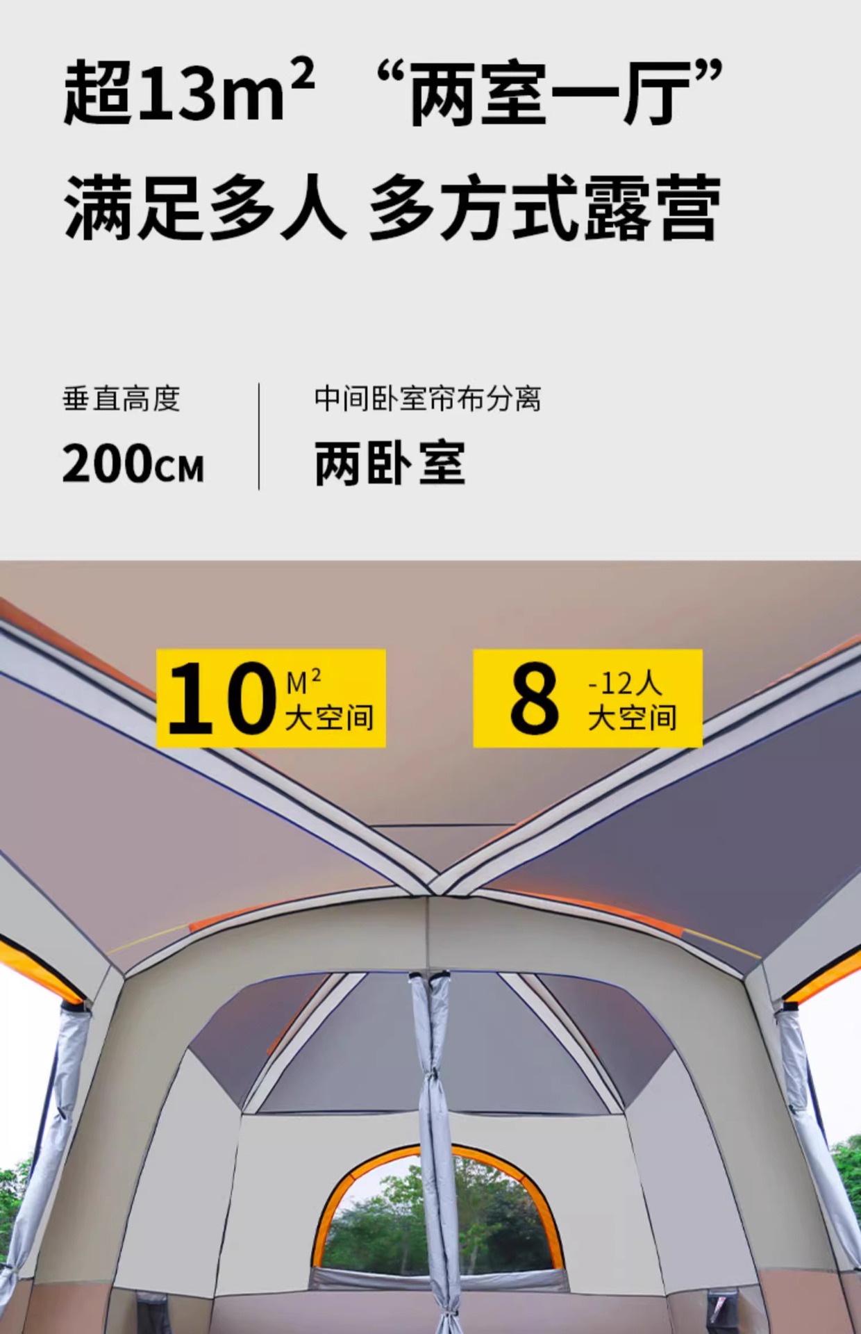 テント屋外2室1ホール大空間キャンプ装備キャンプ携帯折り畳み日焼け止め防雨公園ピクニック