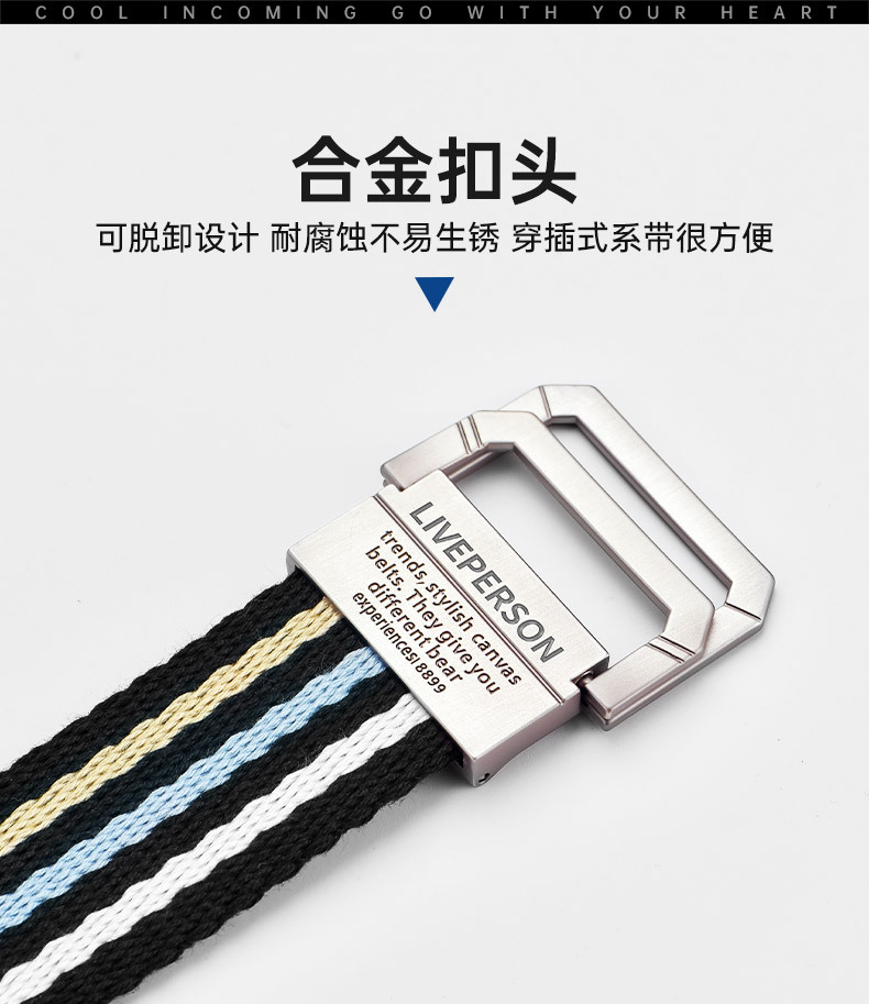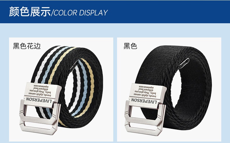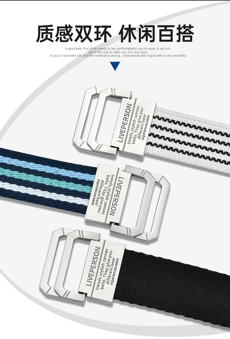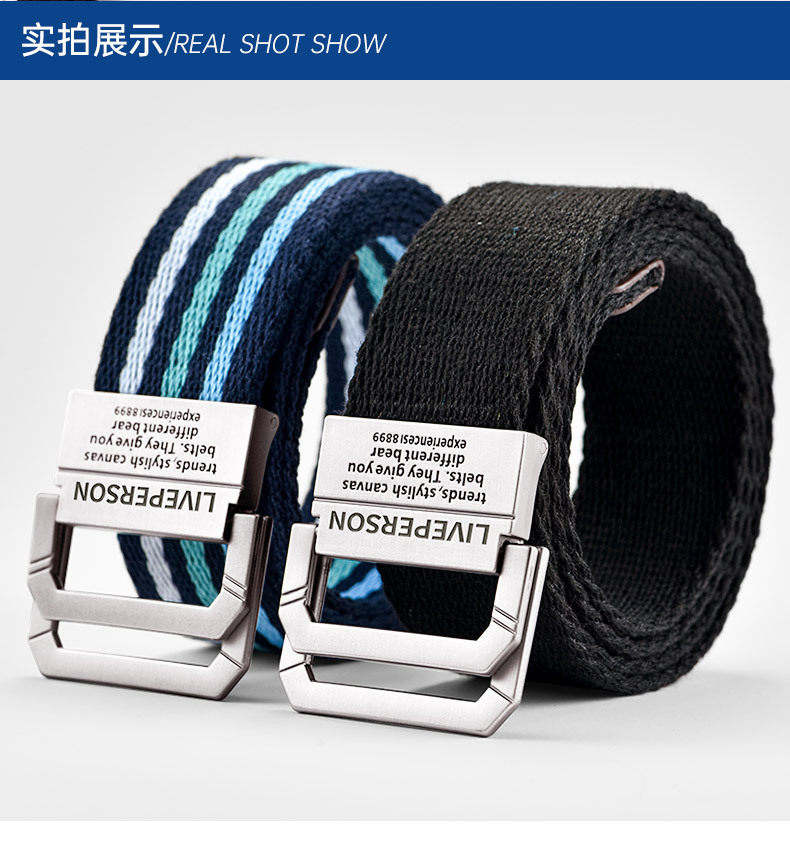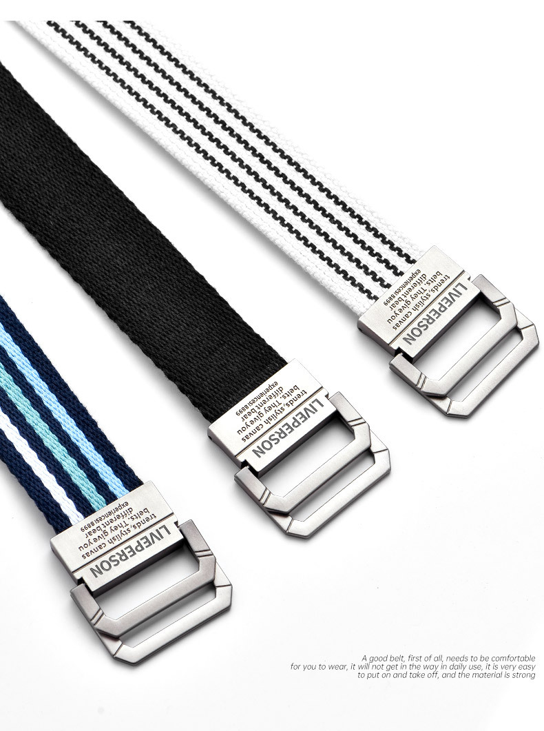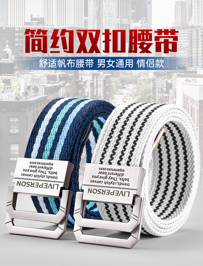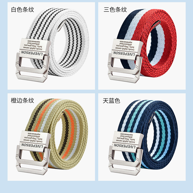 延長双環バックルキャンバスベルト男性ベルト女性韓国版青少年ジーンズ軍事訓練学生布ベルト潮
