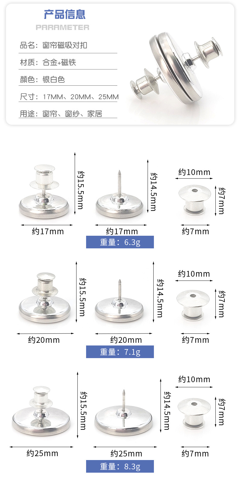 卸売りカーテン磁気吸引対バックル磁石釘なしボタン窓糸漏れ防止閉鎖子母ボタン固定神器ボタン