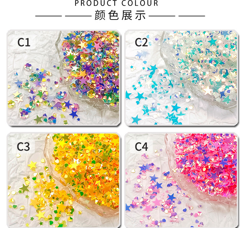 雅乐朵尾魚DIY装飾アクセサリー、ミックスカラーの金光葱粉、高輝度中間層充填、箱詰めジュエリービーズ