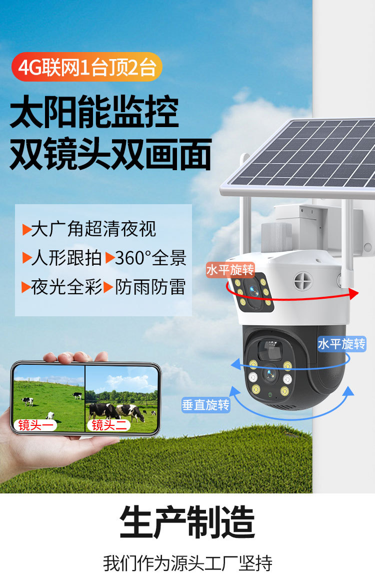 ソーラーカメラ屋外監視屋外リモート携帯電話モニター 360 度ナイトビジョンフルカラーデュアルスクリーン