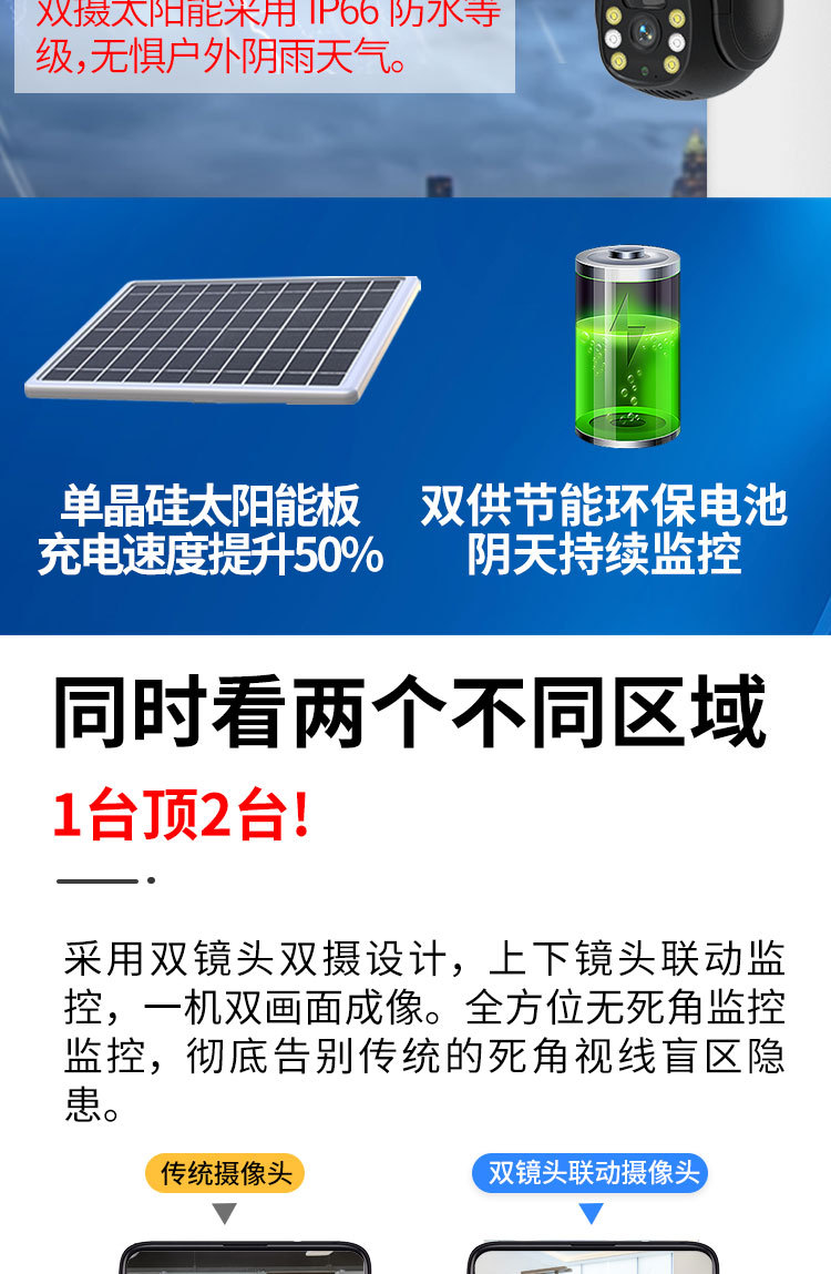 2.4gwifi版ダブル画面ソーラーカメラ (ブルートゥースネットワーク対応) 【10400mah】