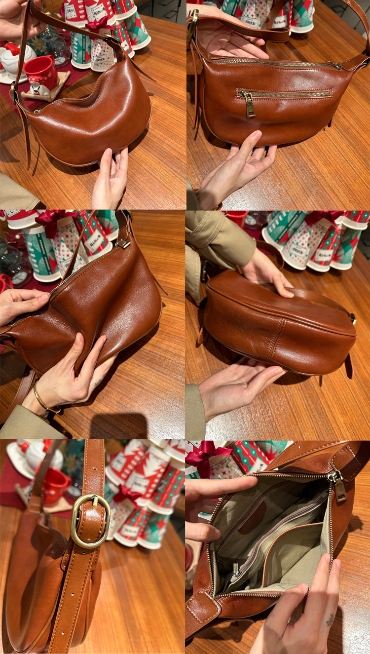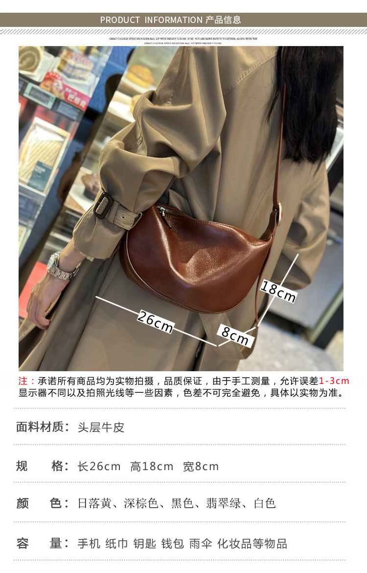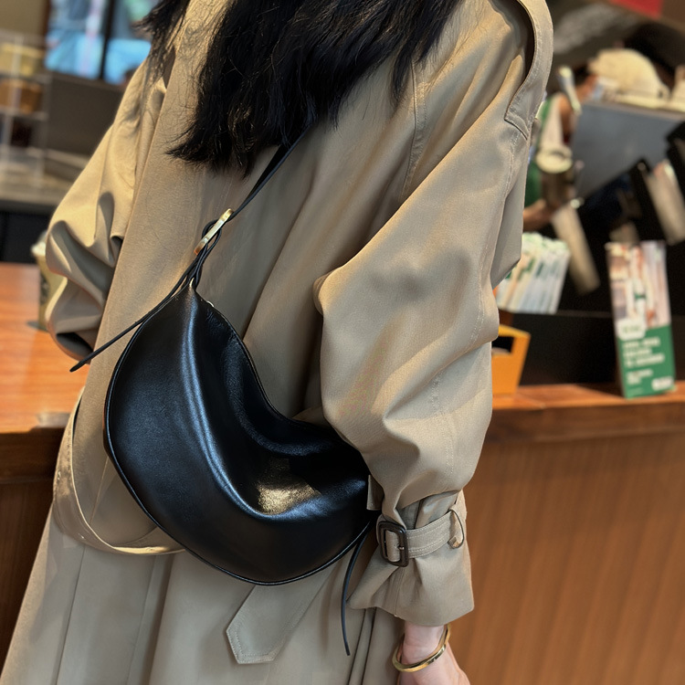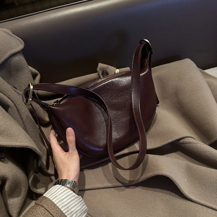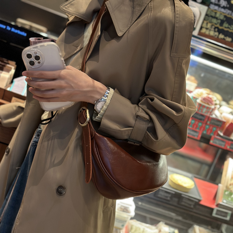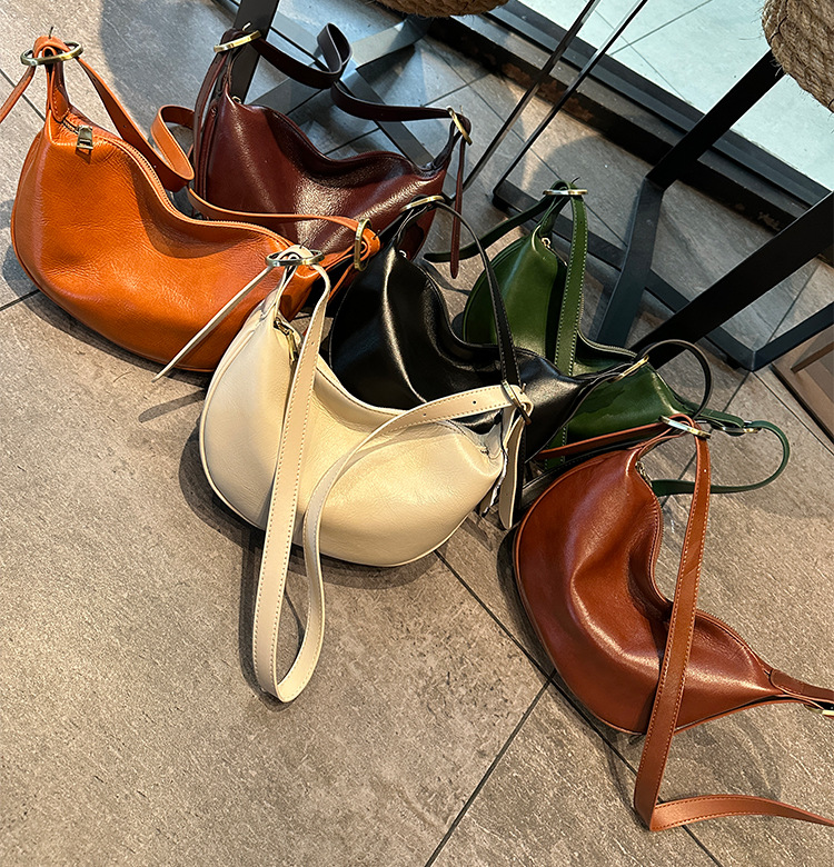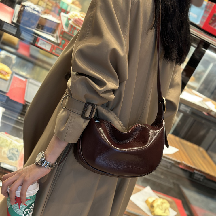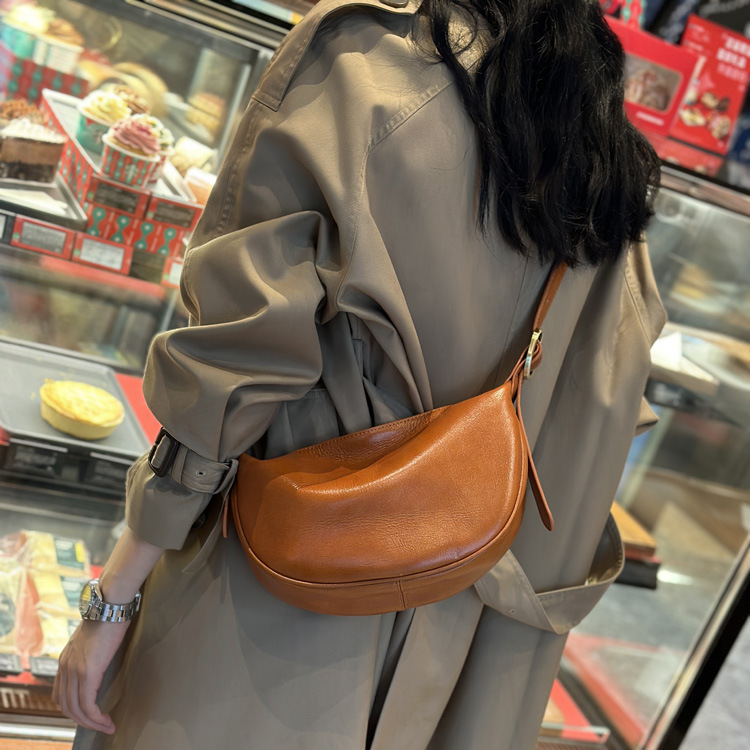 本革レディースバッグ 2025 新しいファッション脇の下餃子バッグレトロ通勤牛革ショルダーメッセンジャーバッグ女性のサドルバッグ