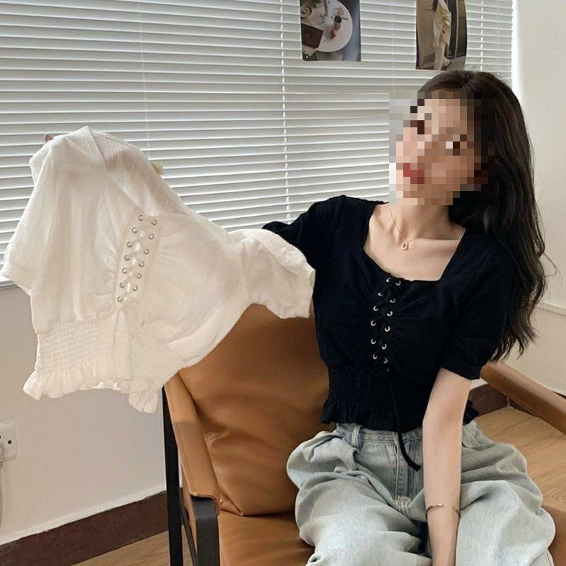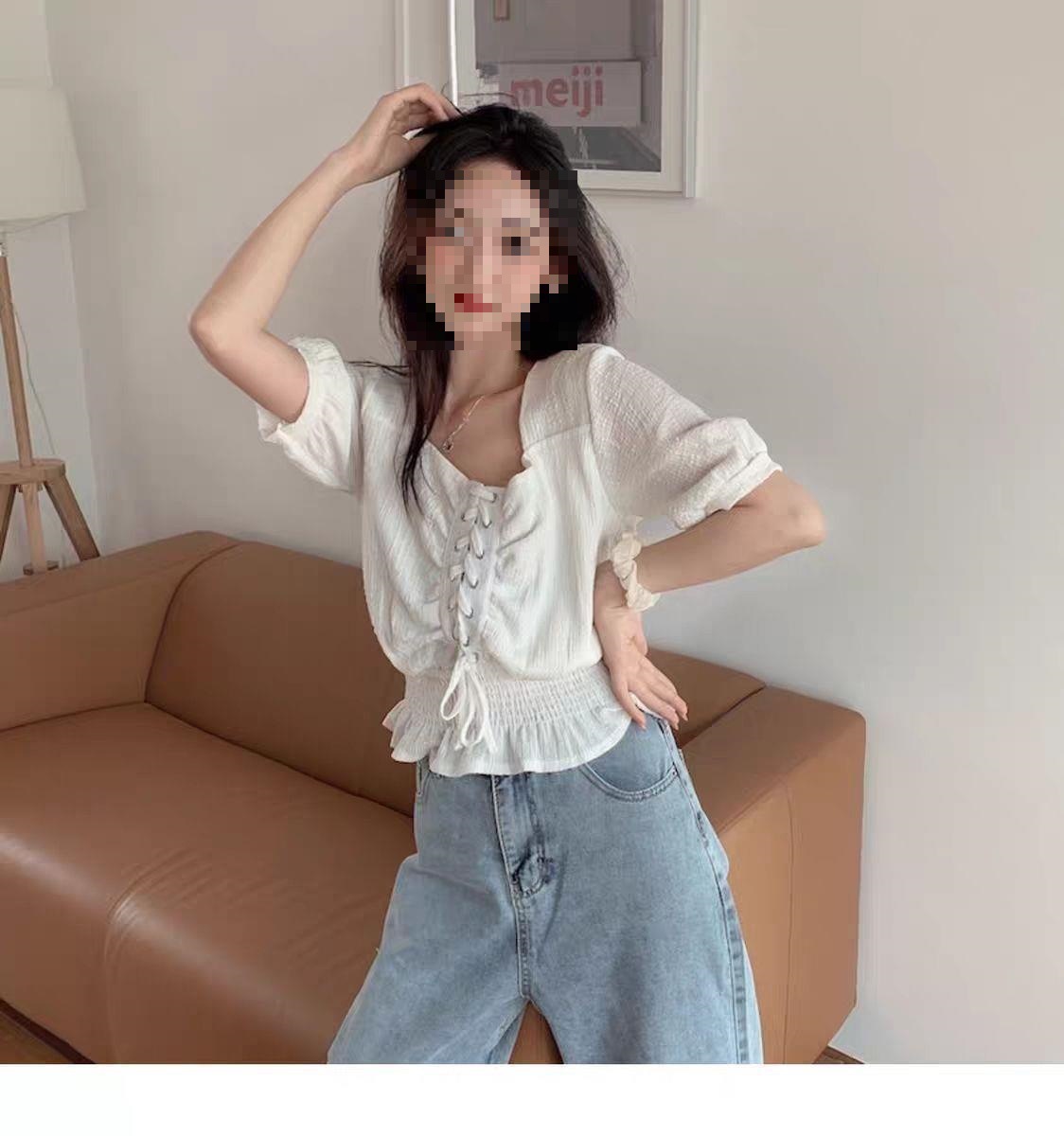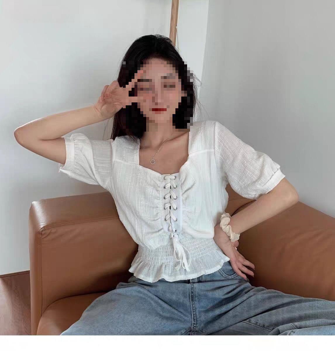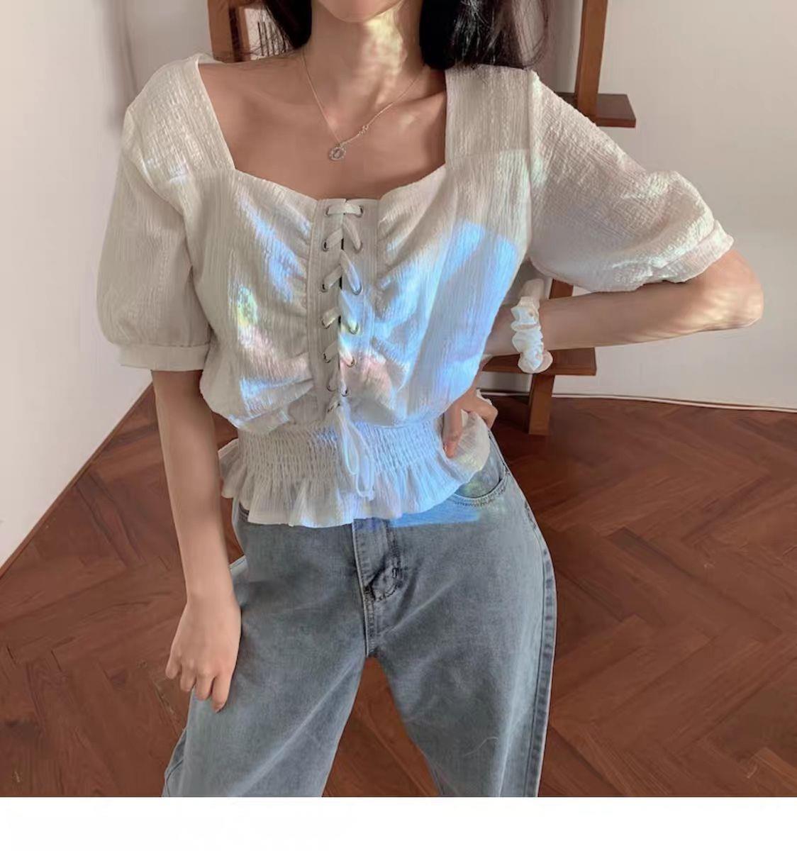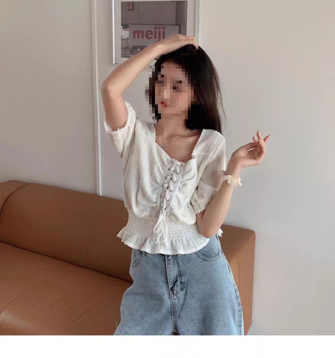 万能シャツ スクエアネック レースアップ 2025年新作 レディース ウエストシェイプ ゆったりトップス スリムフィット 着痩せ効果 半袖 シフォンシャツ