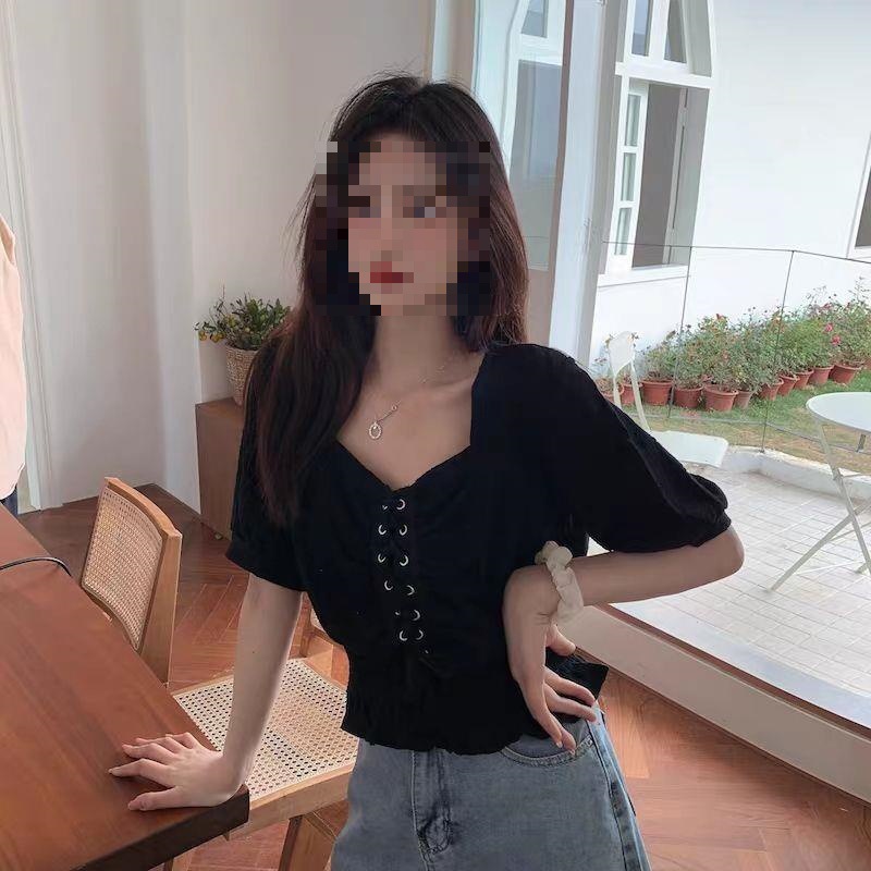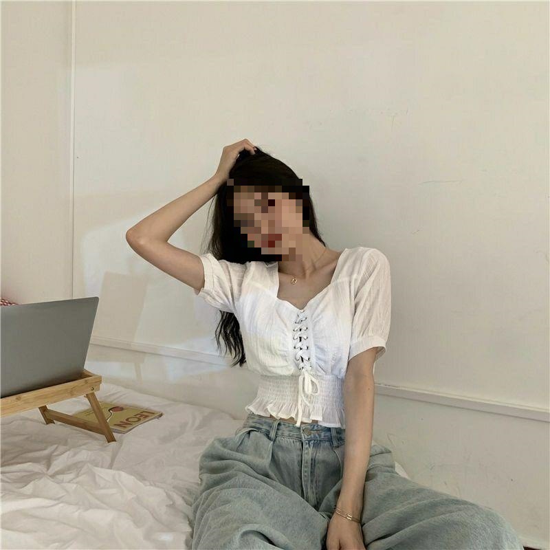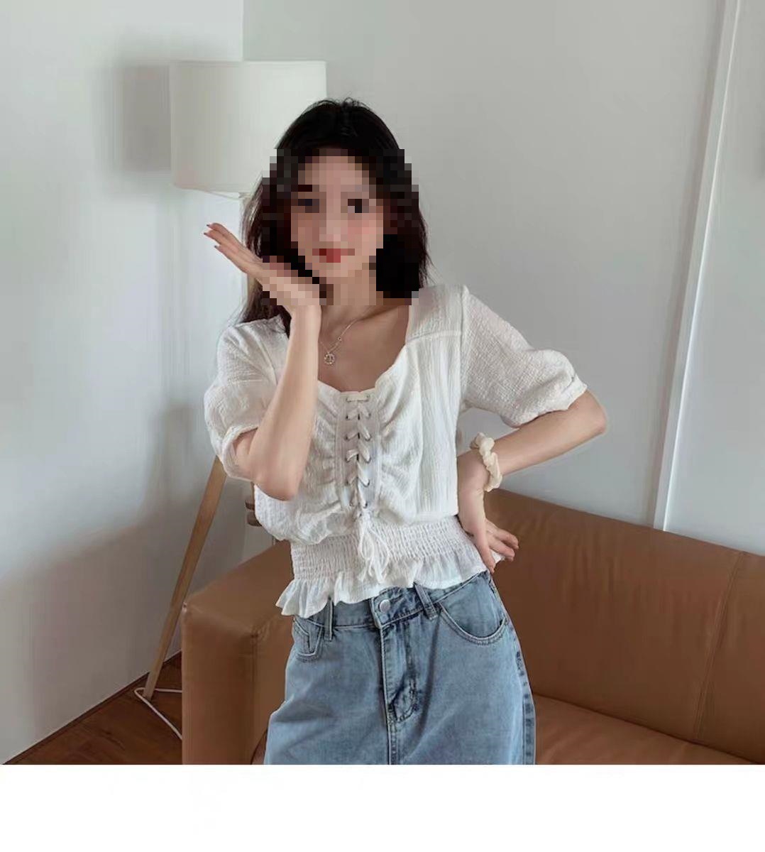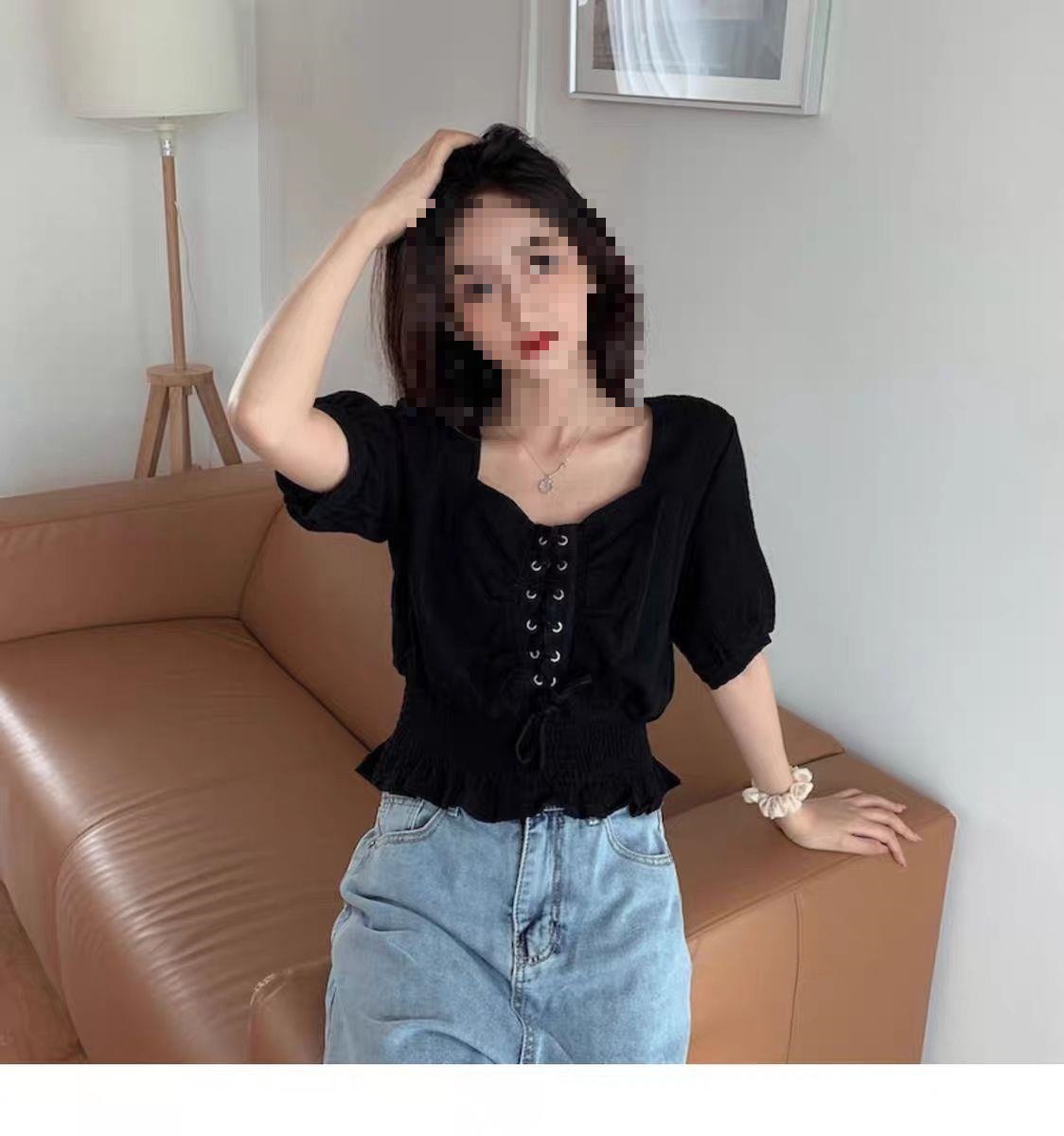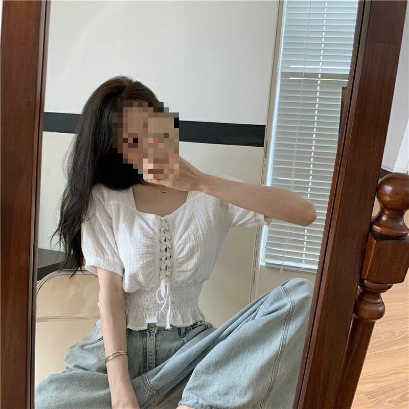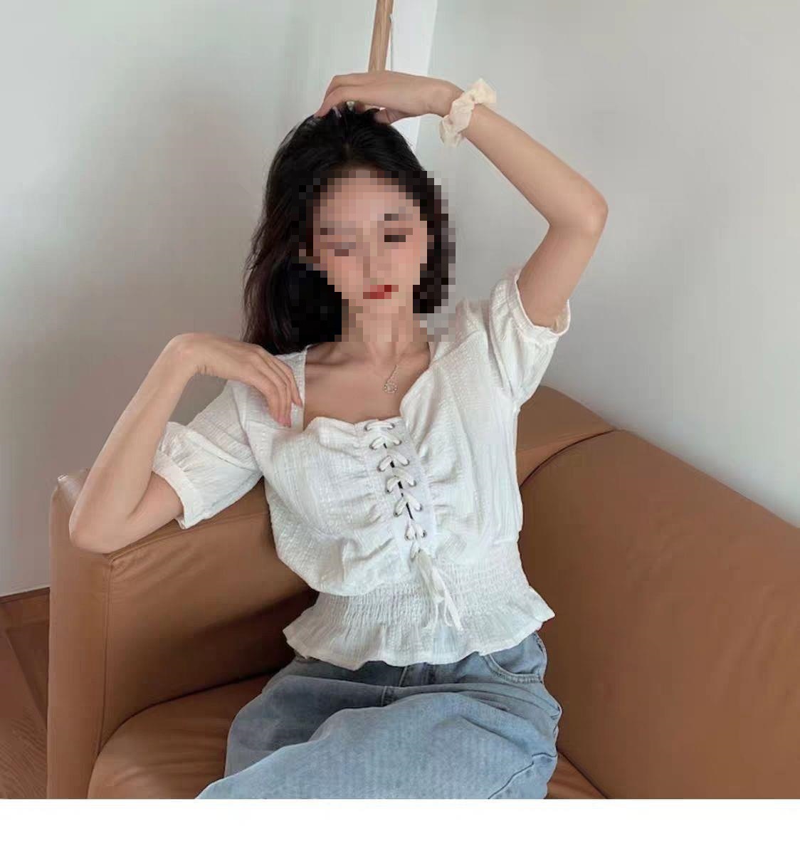 万能シャツ スクエアネック レースアップ 2025年新作 レディース ウエストシェイプ ゆったりトップス スリムフィット 着痩せ効果 半袖 シフォンシャツ