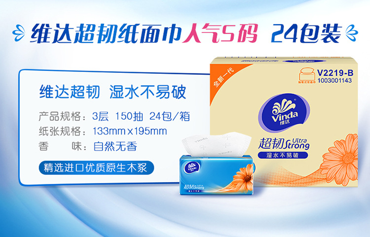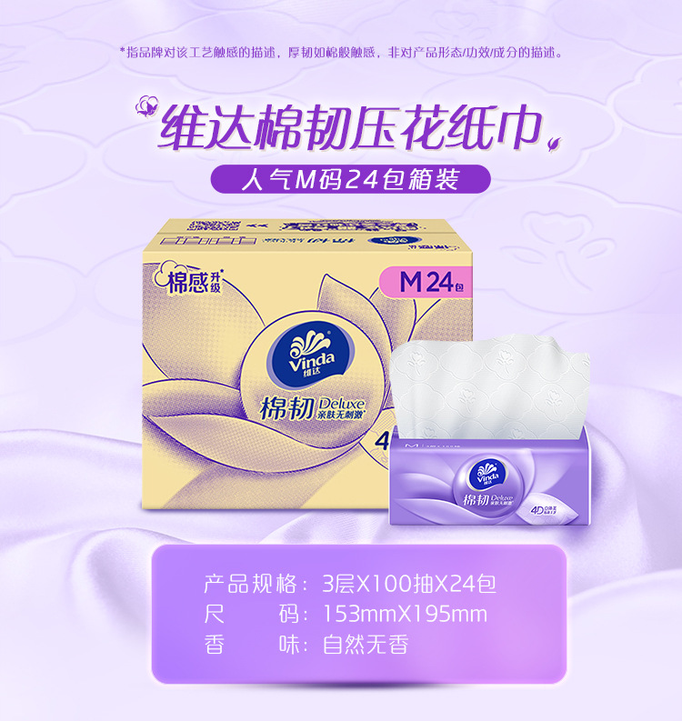維達は紙の立体の米綿の靭性の4dエンボスのティッシュの紙の24包みの無香のナプキンの衛生のティッシュの箱の卸売りを引き出します。