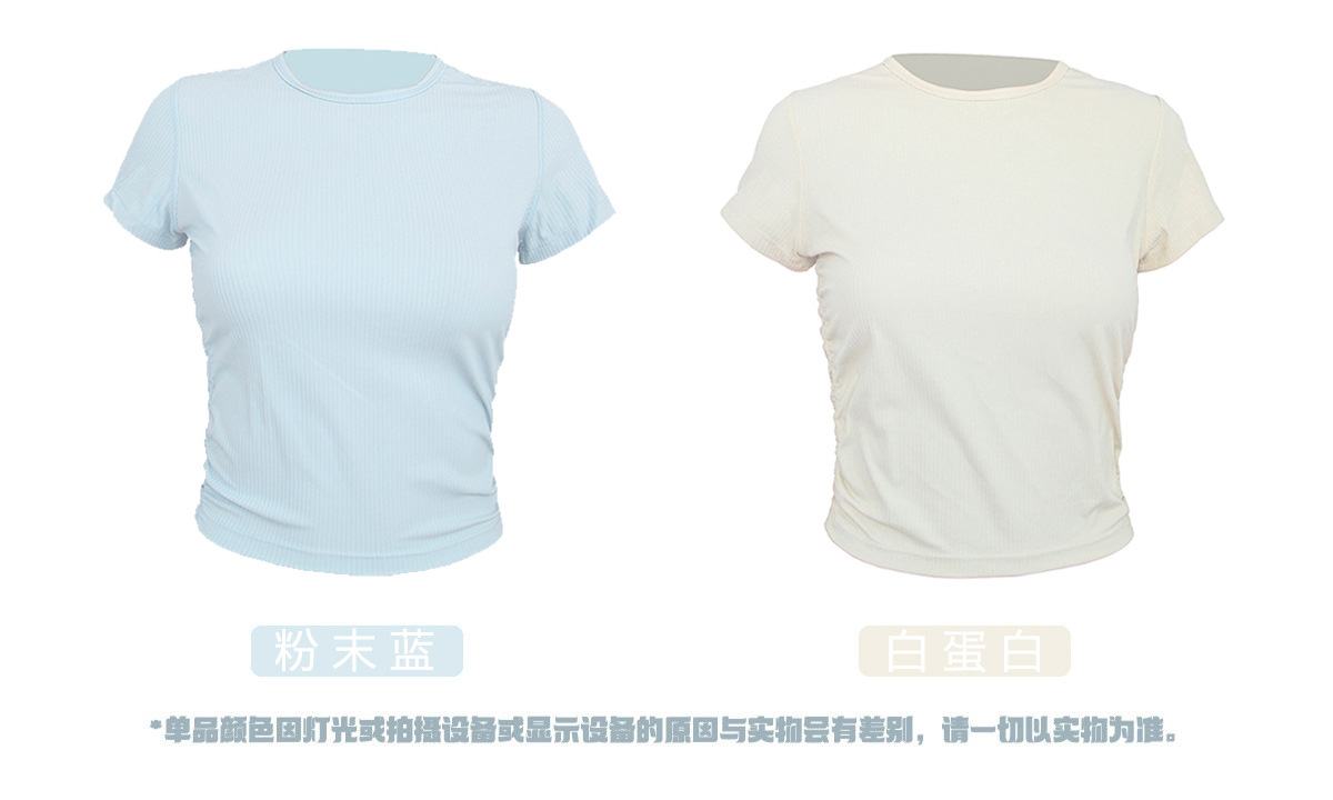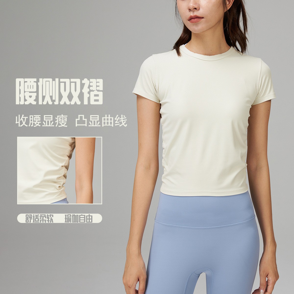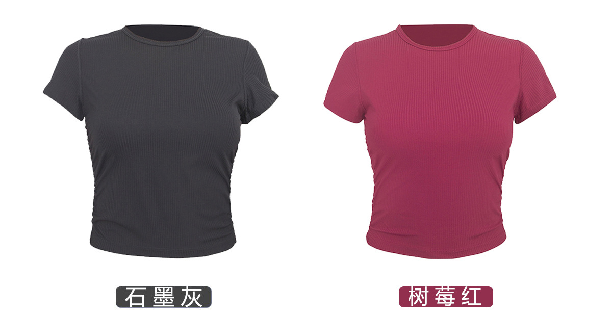 ヨガウェア リブプリーツ ウエストシェイプ 半袖 レディース カジュアル 通気性 速乾性 Tシャツ アウトドア スポーツ ランニング フィットネスウェア