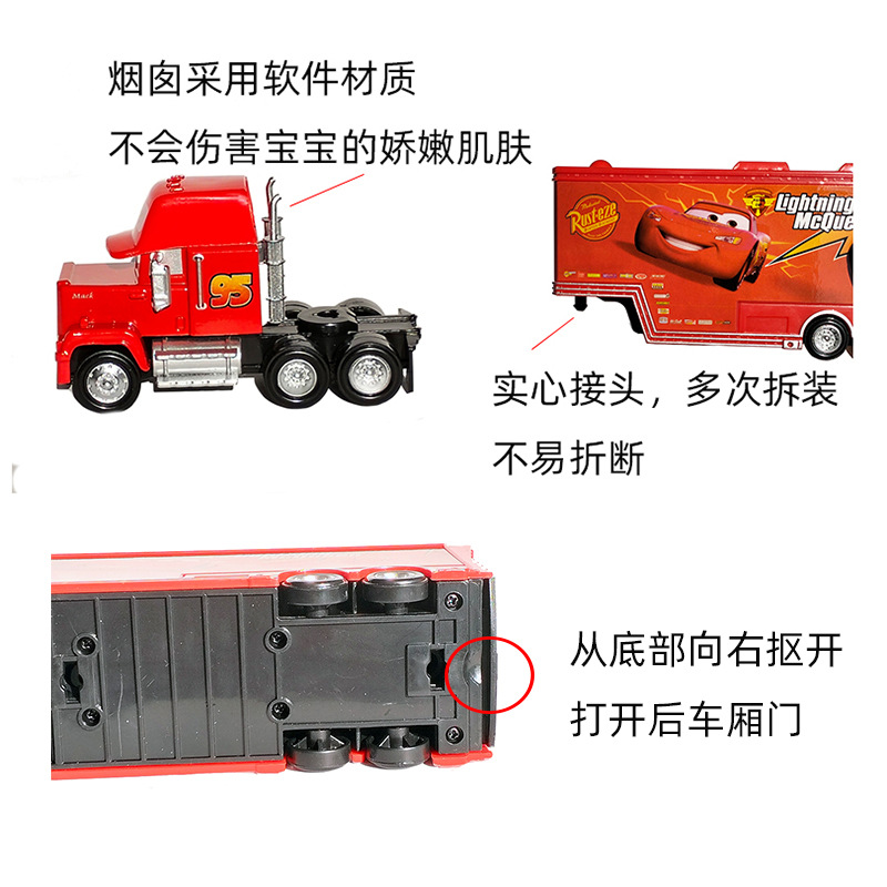功能:货柜车后车厢可以打开,放一个赛车进去