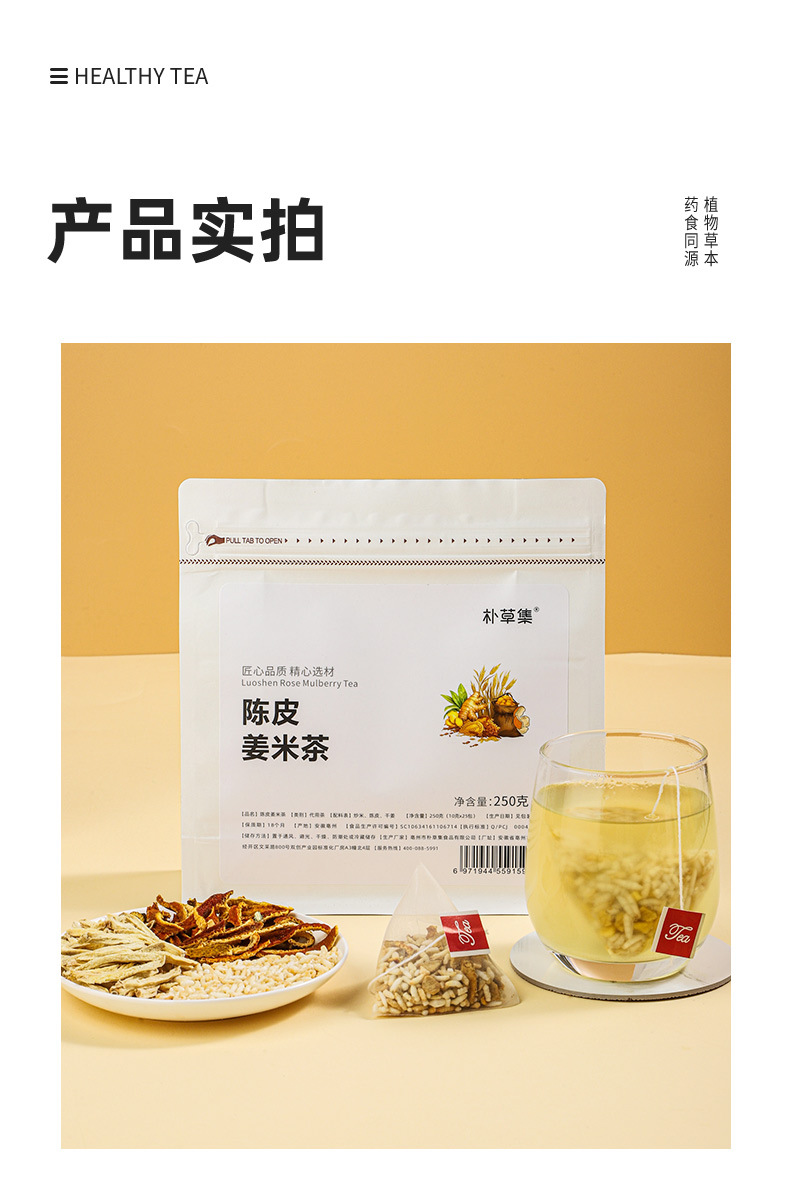 陳皮姜米茶三角包姜米炒め熟姜糸陳皮花茶独立包装大袋代発卸売り