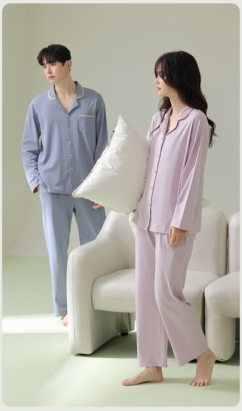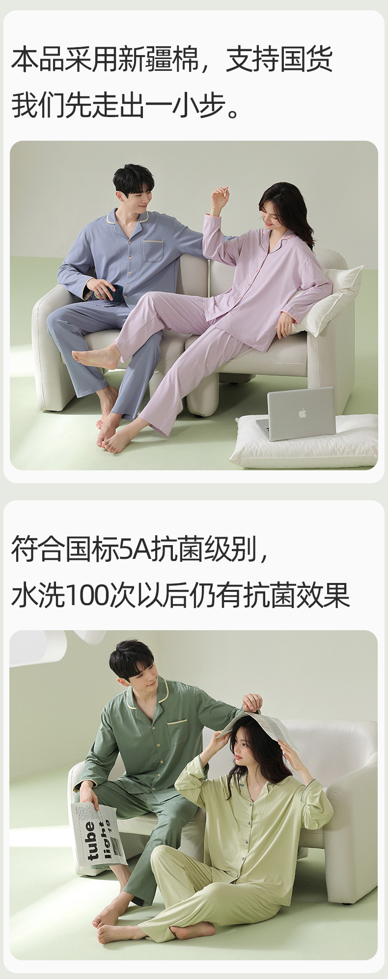 【抗菌綿】a類防ダニ抗菌パジャマ女性春秋純綿カップルパジャマ男性ホームウェアセット