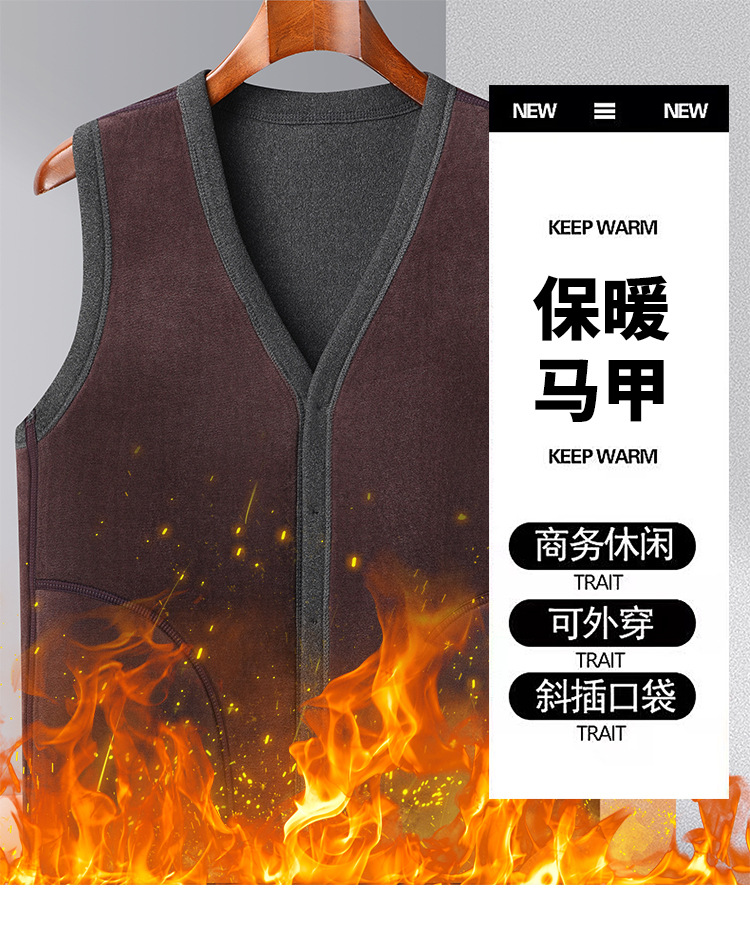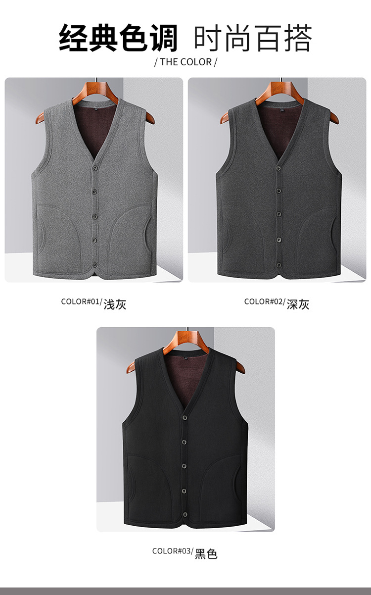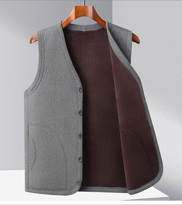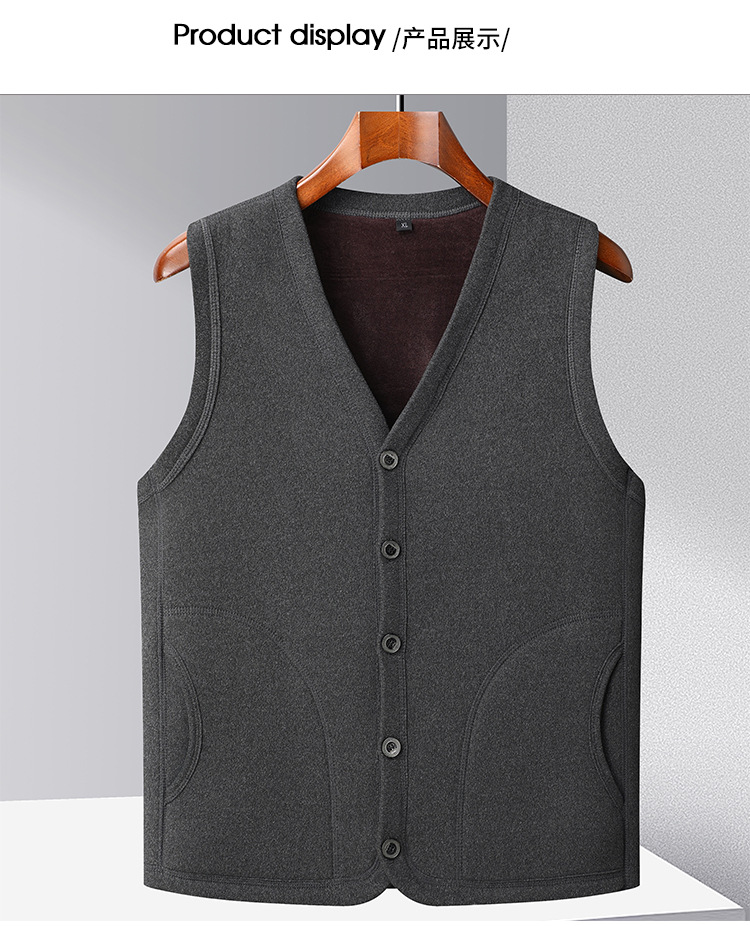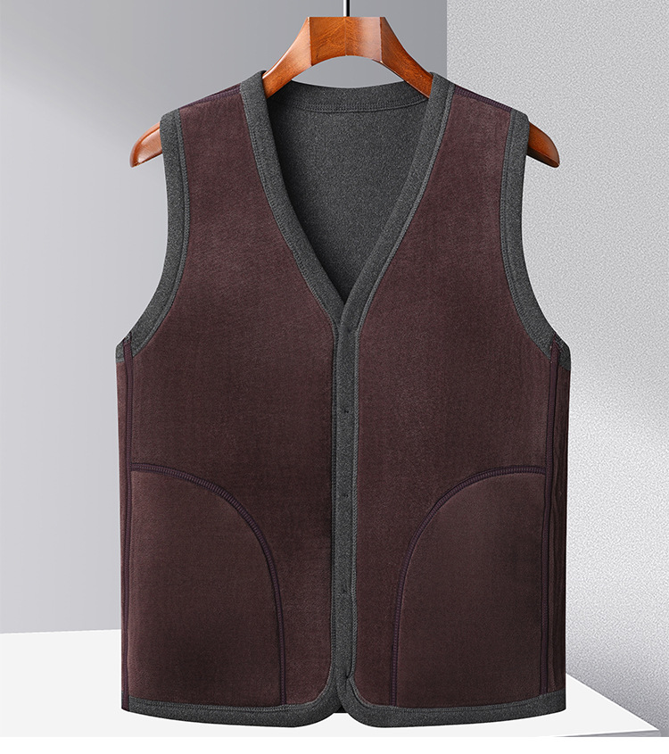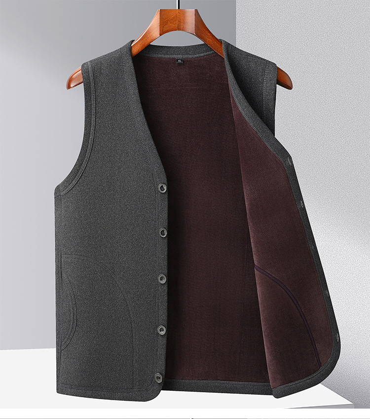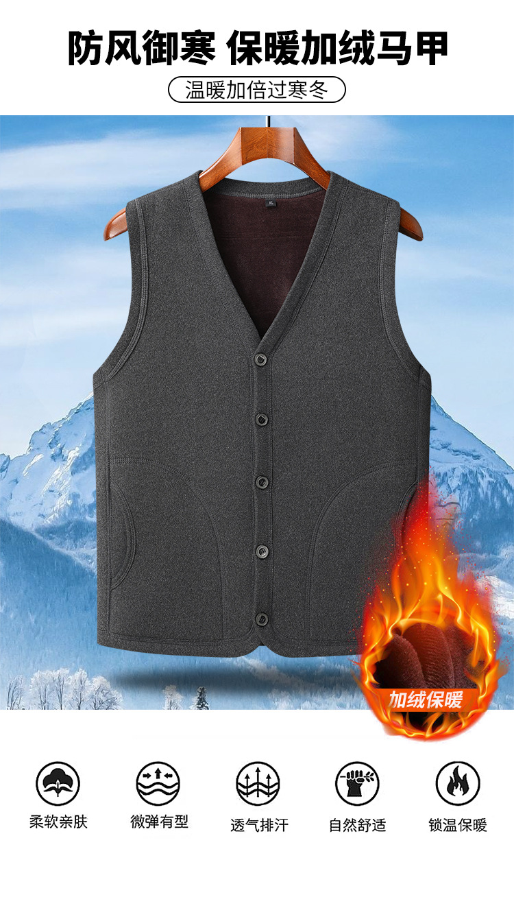 メンズベスト 中高年向け保温ベスト 裏起毛 厚手 パパ服 クロスボーダーカジュアル ベースレイヤーカーディガン おじいちゃんジャケット