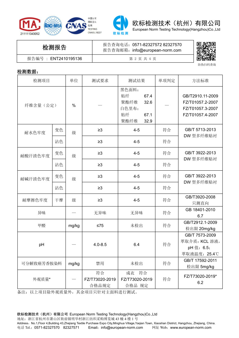 主面料成分含量