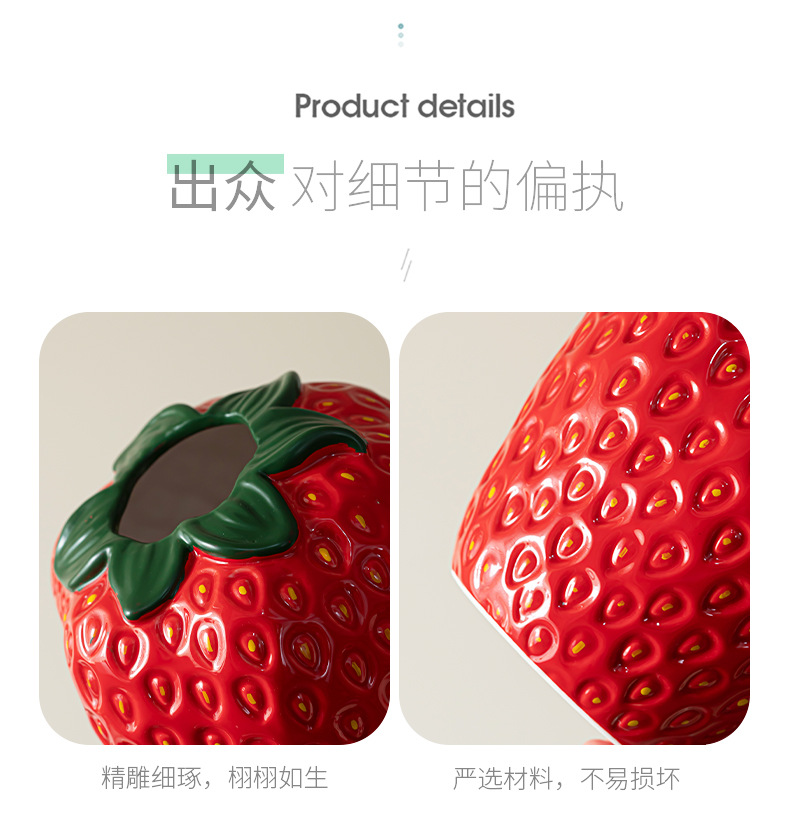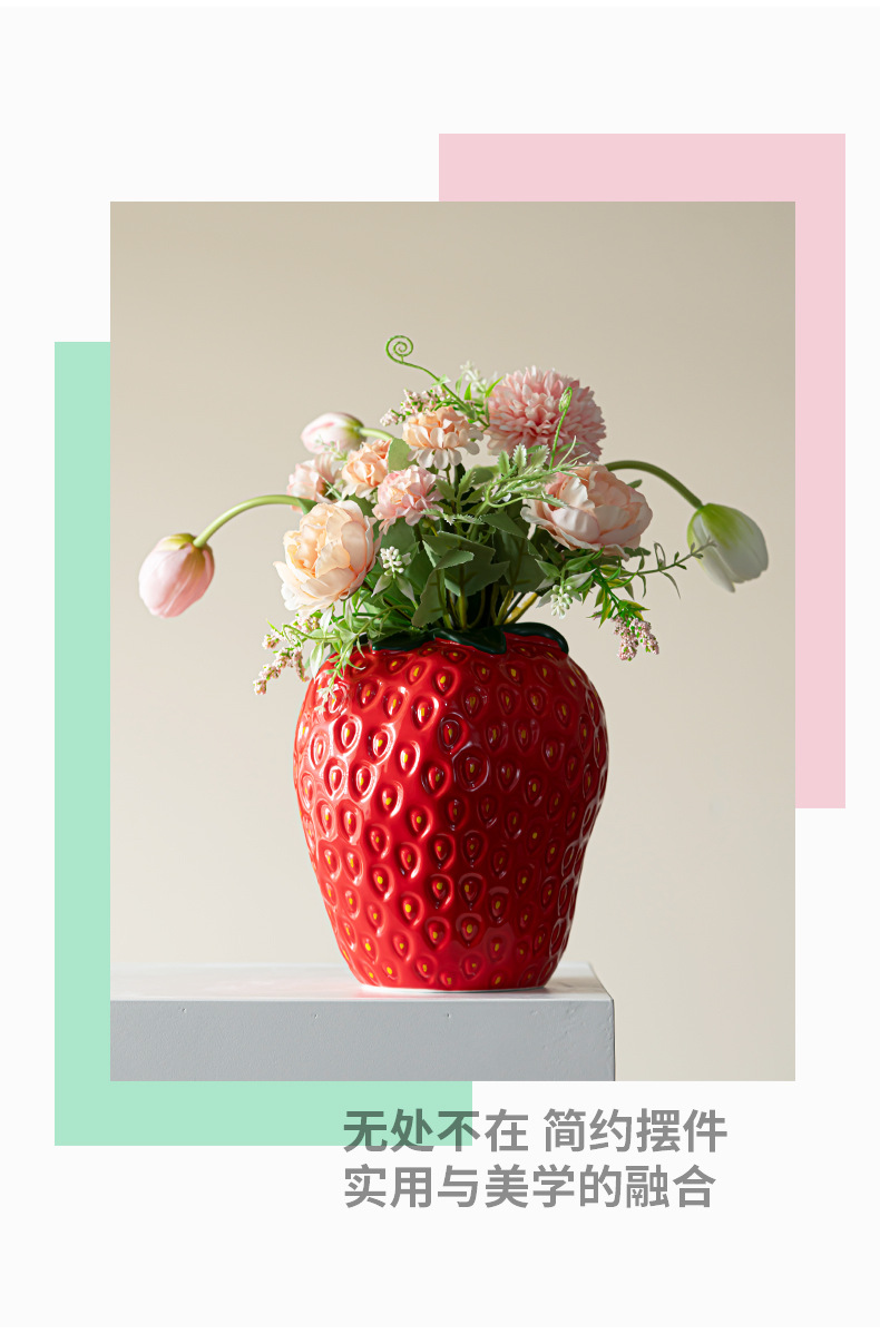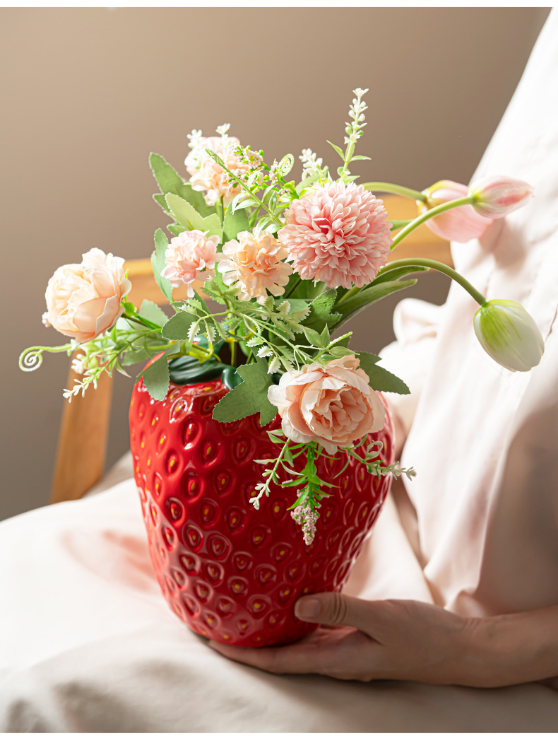 現代のイチゴの花瓶の陶磁器の水培insの高い顔の値の軽い豪華な置物の客間の生け花のシミュレーションの花の大きいサイズの生け花の挿し込み