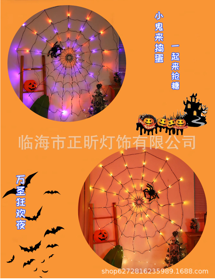 クロスボーダー発光クモの巣ライトハロウィン装飾ライト LED ストリングライトゴーストフェスティバルライト雰囲気ライト屋外パーティー用品