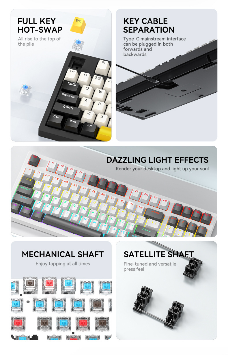 K98青軸マクロ定義ゲームキーボード混彩発光機械キーボード卸売り
