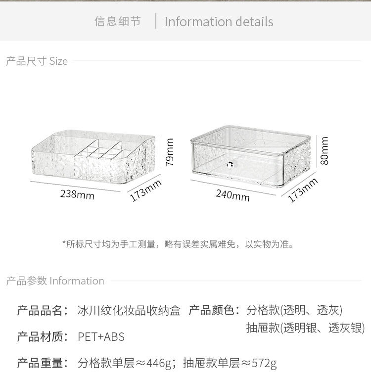 透明引き出し収納ボックス,クリアグレー引き出し収納ボックス,透明分格収納ボックス,クリア灰格収納ボックス
